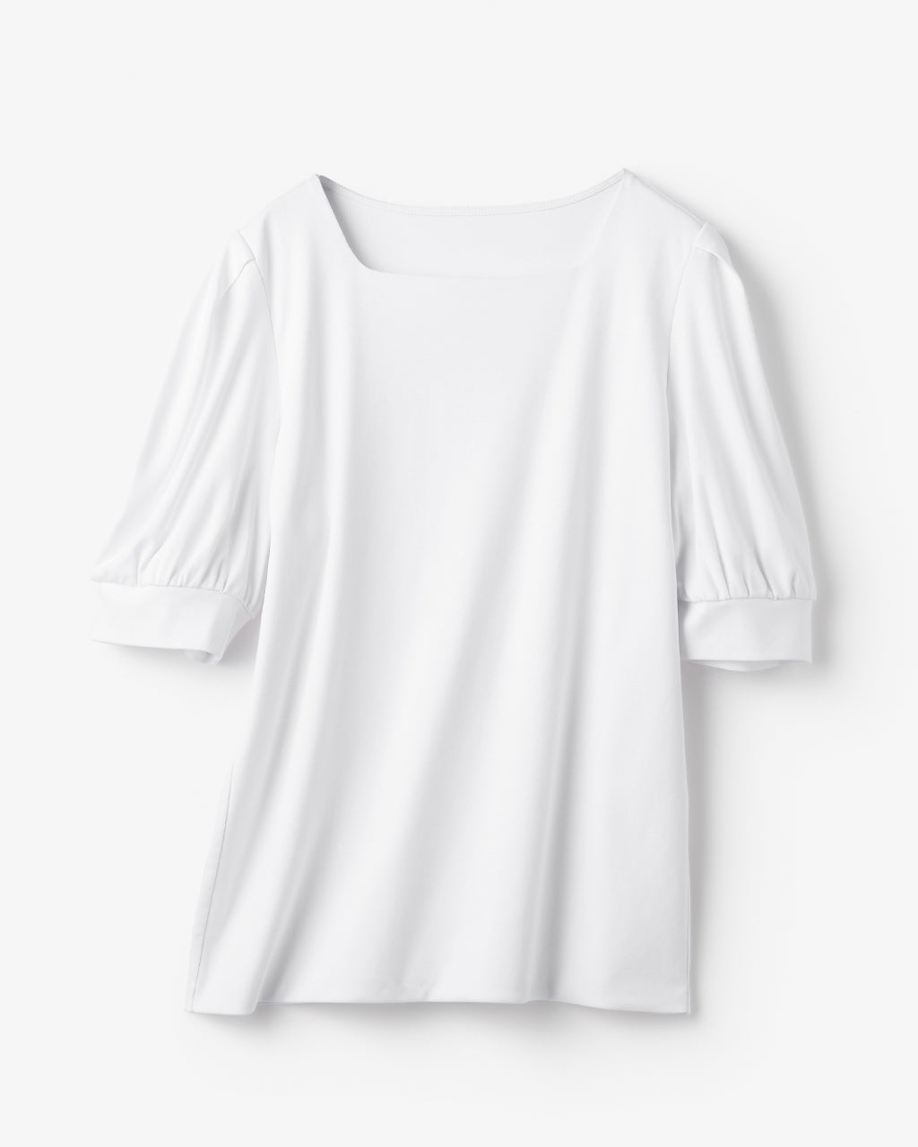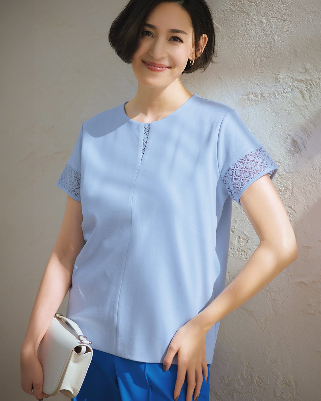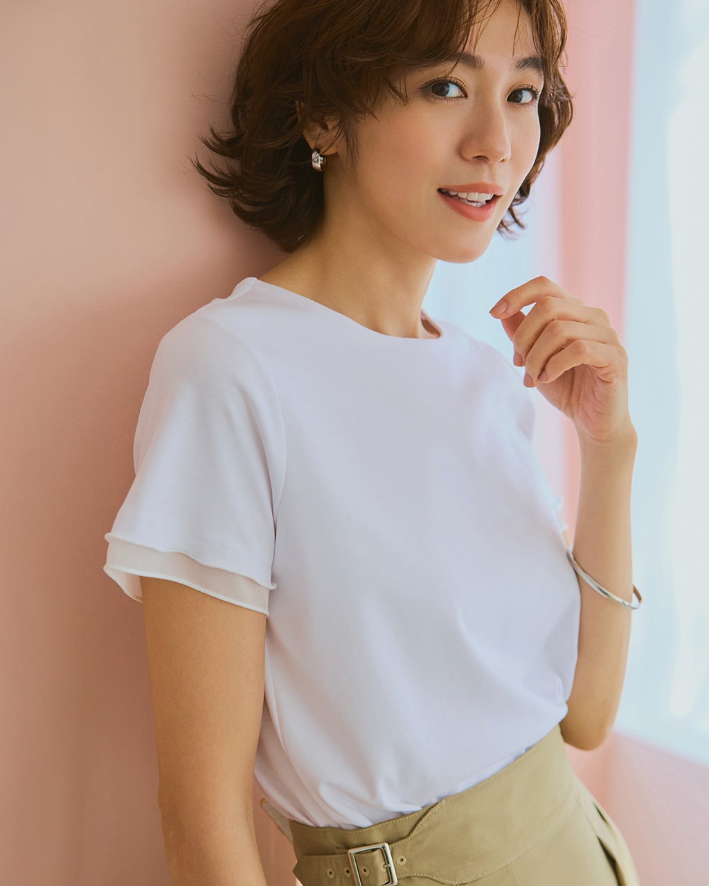 素材の持つ上質感がブラウスにも負けない品格Tシャツの証です。 -