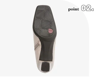 指を締めつけない快適なスクエアトゥ。やわらかな本革で、前すべりを軽減する設計で長時間履いても快適です。