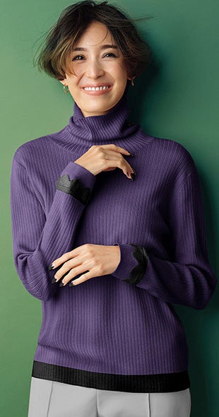 折り返してもくしゅっとたるませてもキマる、なめらかな肌ざわりのタートルネック。