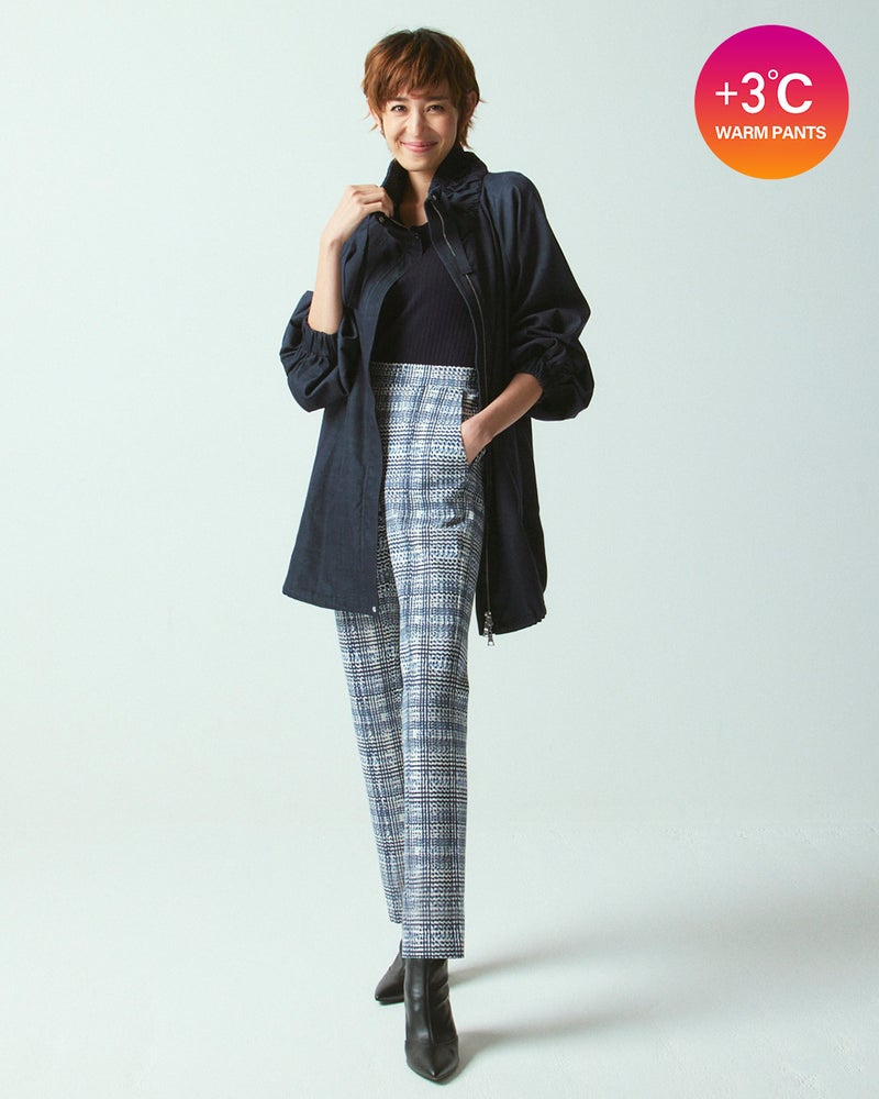 ぴたぴたになりすぎない上品ストレートスリムプレミアサーモは機能だけでなく、大人世代のボディデータに基づいたスタイルアップデザインも魅力。ストレートスリムはすっきり見えるフィットデザインとぴたぴたになりすぎない裾のデザインで、大人世代が品よく着こなせるスリムシルエットに仕上げました。