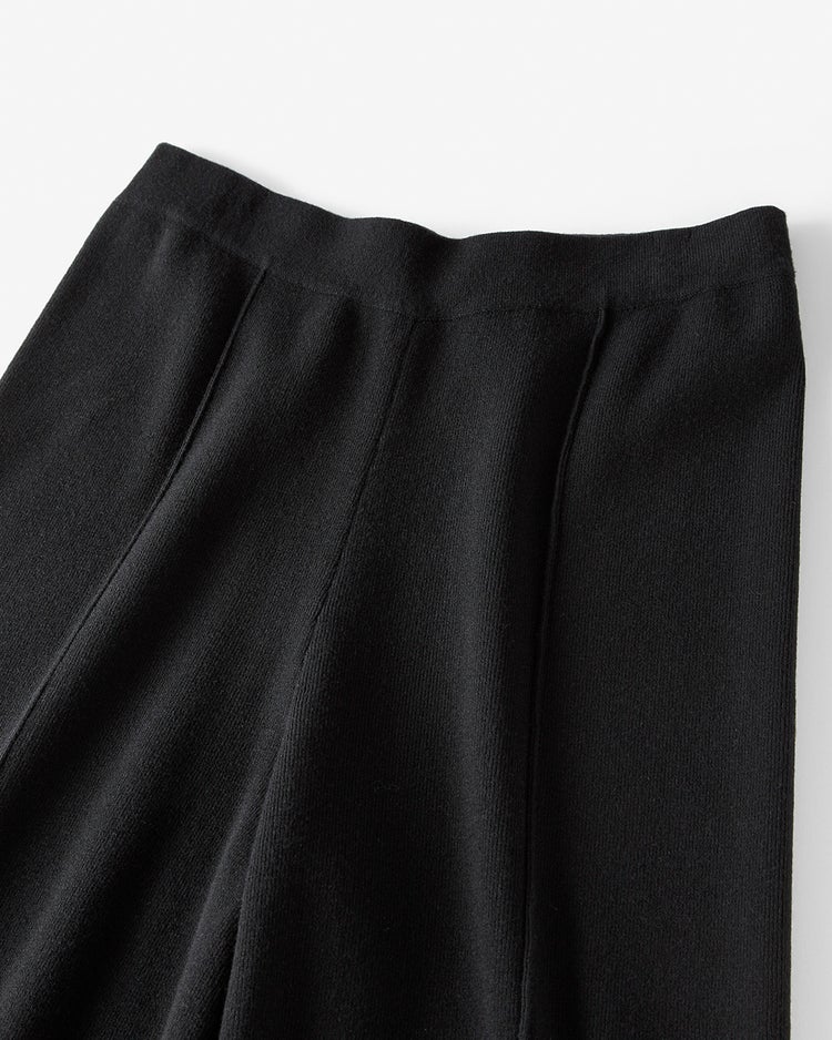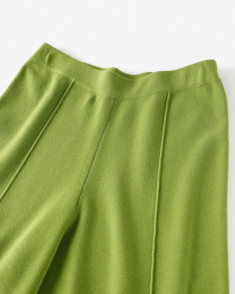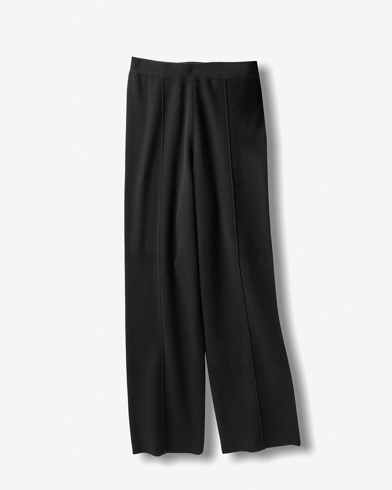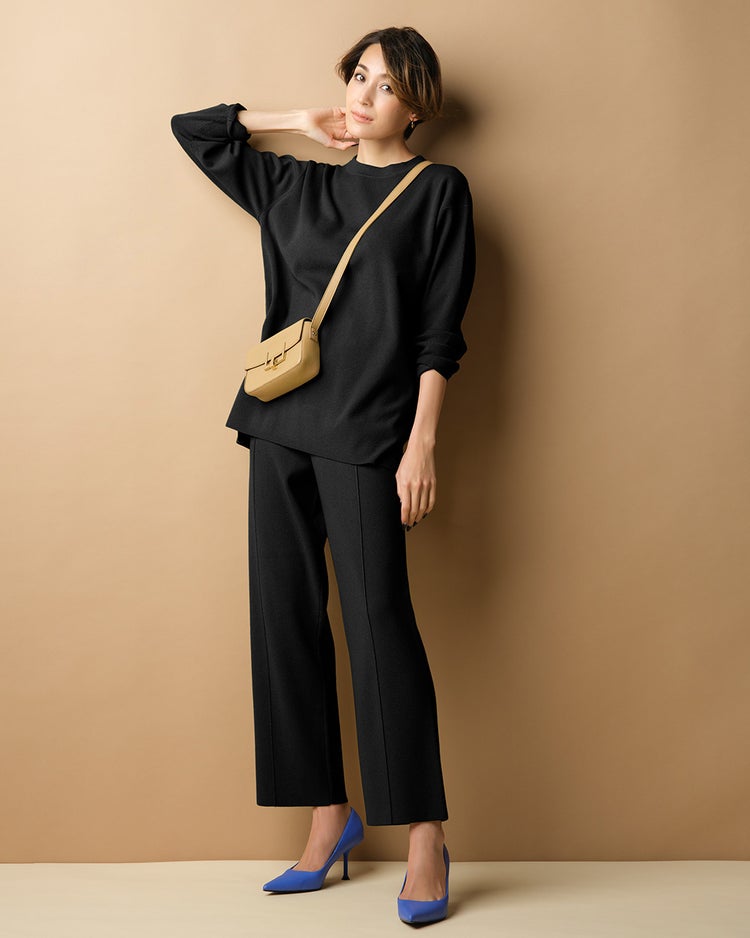 ハリがあり、きちんと見えする総針編みパンツ。ピンタック入りのストレートパンツにストレッチ糸を加え、より体型が響きにくいしっかりとした編地に仕上げています。同素材のトップス(12295)とセットアップもできる、着まわしにも便利なアイテムです。