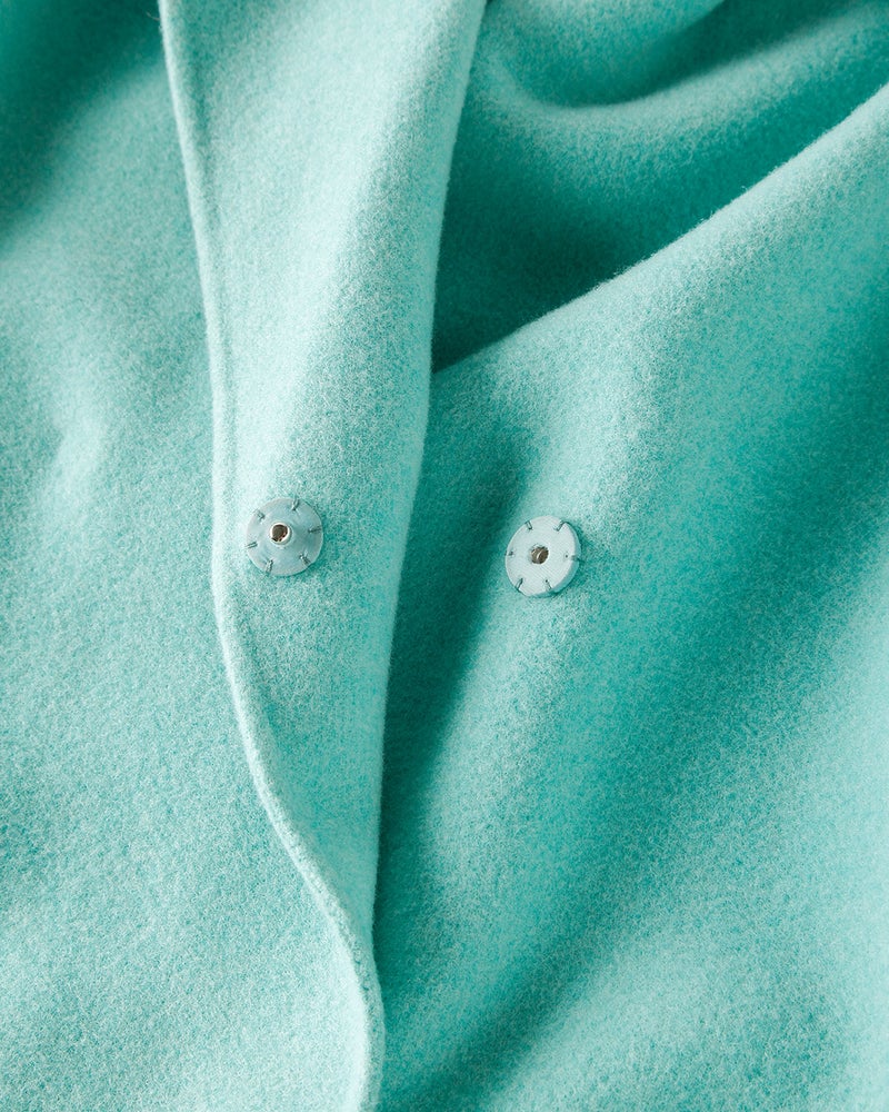 選んだ素材は、豪州ジーロン地方に生息する生後6ヶ月の羊毛を使ったジーロンラムと、艶となめらかさを生み出すカシミヤのブレンドウール。両面を二重織りにしてダブルフェイスに仕立てた最高級のウール素材は、ヨーロッパのビッグメゾンでも採用されているハイグレードな逸品です。仕上げの水にまでこだわって、カシミヤ特有の柔らかな質感や発色の美しさも実現しました。