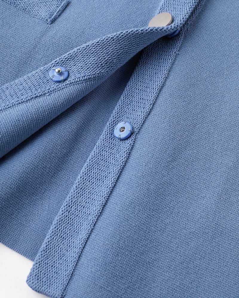ニットならではのデザイン前立てやポケット口は、裏目使いにして編地に変化をつけ、アクセントを添えました。