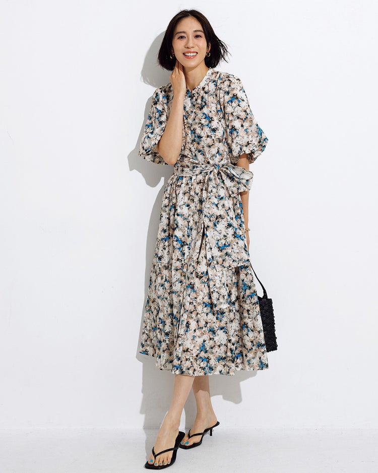 ふんわりフォルムのバルーンスリーブ、共布ベルトでウエストマークで華やかに。