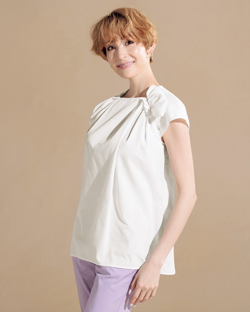 肩のデザインが可愛すぎるかなと思いましたがネイビーを選んだ事でとても上品でカジュアル感もなくスカートにもパンツにも合いそうです。