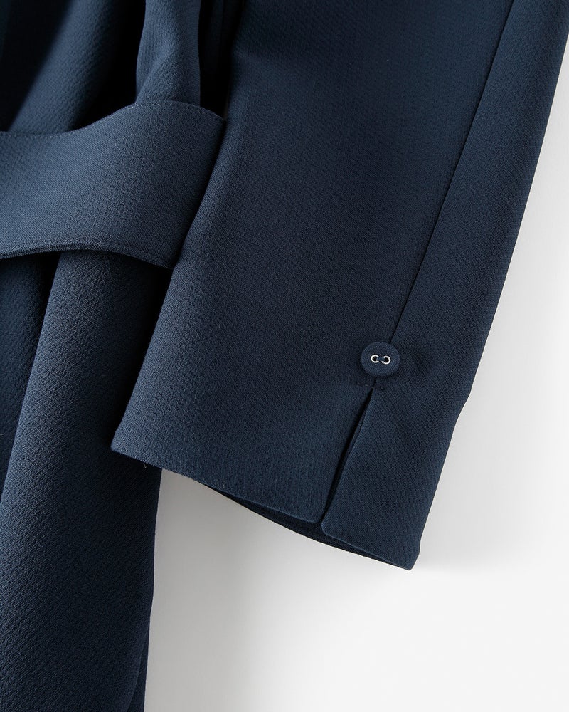 - ミッドナイトブルー7号購入。身長153センチ、体重38キロですが、ゆとりがあるにもかかわらず、大変美しいシルエット。期待以上で気に入りました。生地もしっかりしていて、高級感があります。惜しむらくは、ベルトの金具がチープな雰囲気。この価格なら許容範囲。(私はベルトなしか、手持ちのレザーベルトで着るつもり) 10月のイベントで、パールのネックレス合わせて着用予定。とても楽しみです。