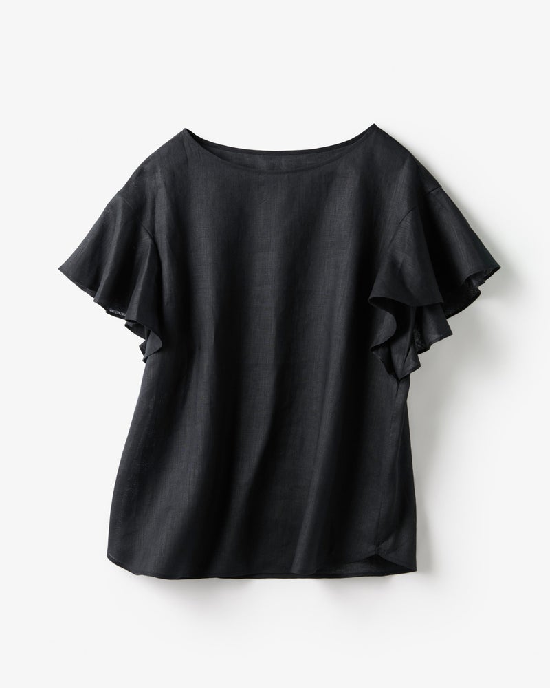 可憐なラッフル袖のフレンチリネン・ブラウス