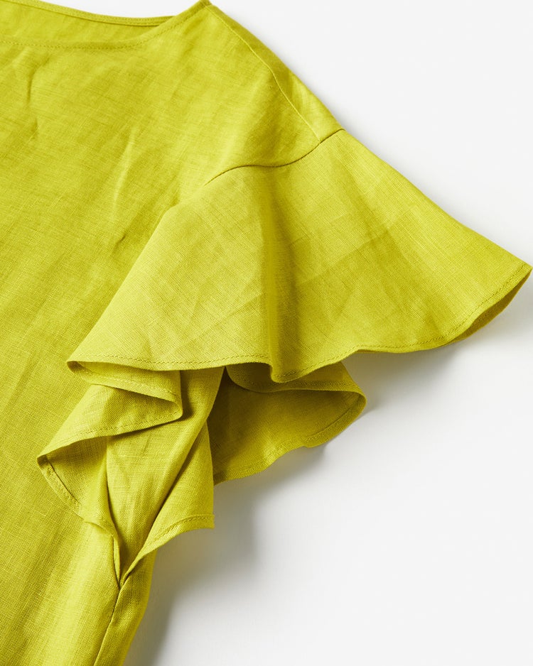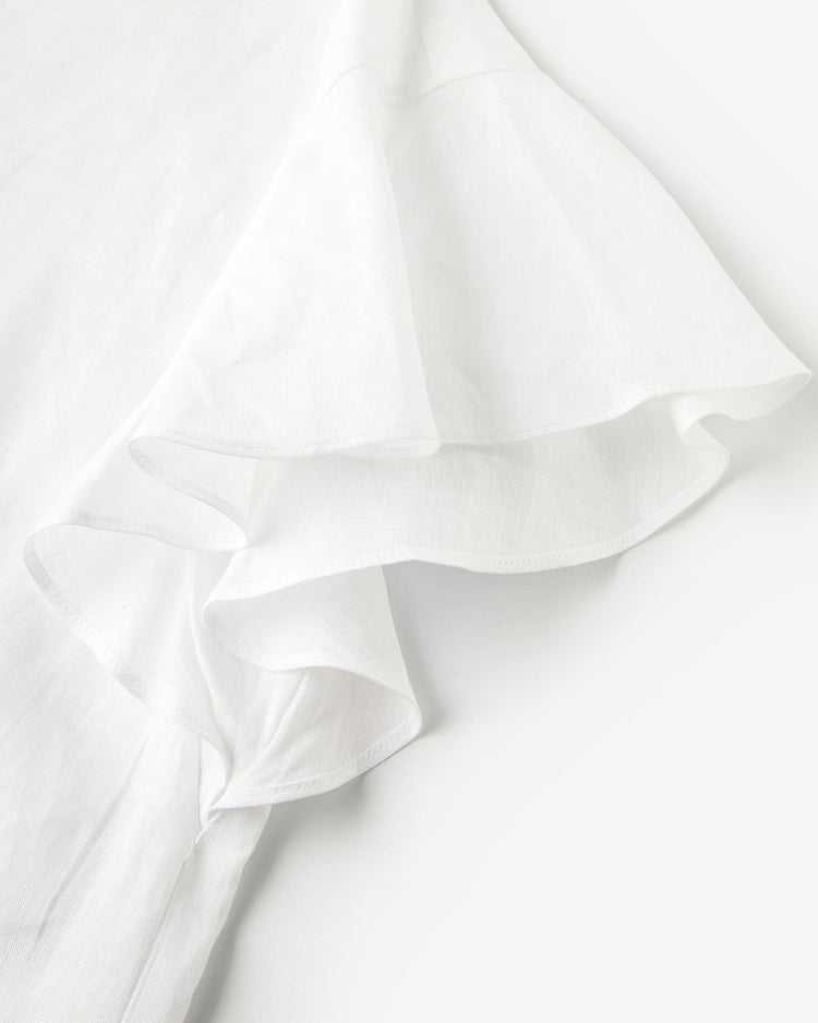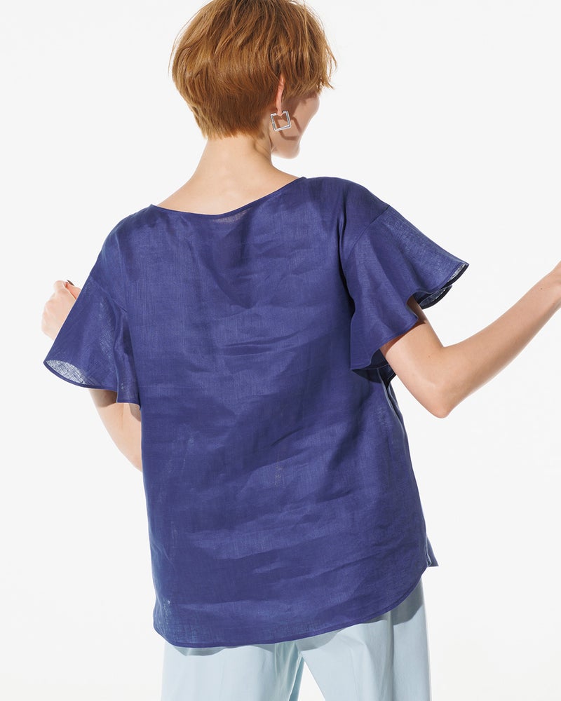 可憐なラッフル袖のフレンチリネン・ブラウス