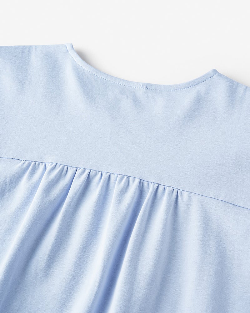 背中はギャザー切り替えで女らしく