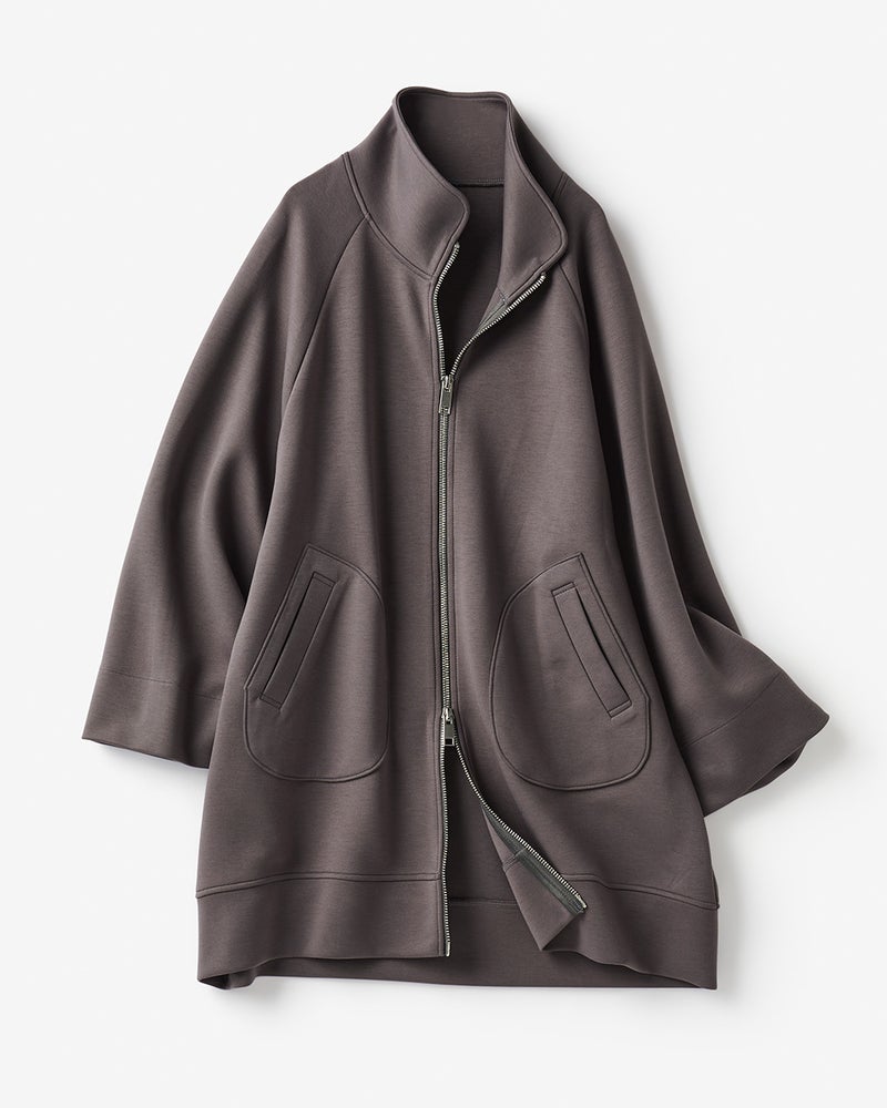 接結スウェット・ジップアップハーフコート(ダークグレー)