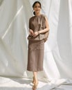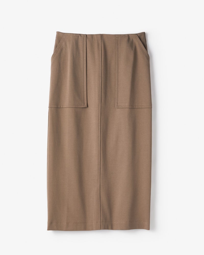 なめらかな光沢とほど良いハリ感で、「体型悩みを綺麗にカバーしてくれる」と人気のポンチ素材のIラインスカート。ボディラインがすっきり見えるヒミツは、体型を拾わない適度な厚みにあり。大きなパッチポケットが目を惹くカジュアルなデザインですが、素材の艶感で上品に着こなして頂けます。同じポンチ素材を使った異素材トップス(商品番号12764)と合わせて、セットアップでお楽しみください。