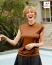 - わたしはショートヘアで襟足からものすごく汗が出るので、ハイネックはそれをせき止めてくれ、尚且つ首回りを隠して日焼け防止にもなりとてもありがたいアイテムです。それがサラッとして夏に着やすい機能の生地で、色落ちも心配なく着られる黒のトップス。綿Tより重宝してます!