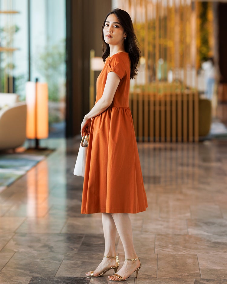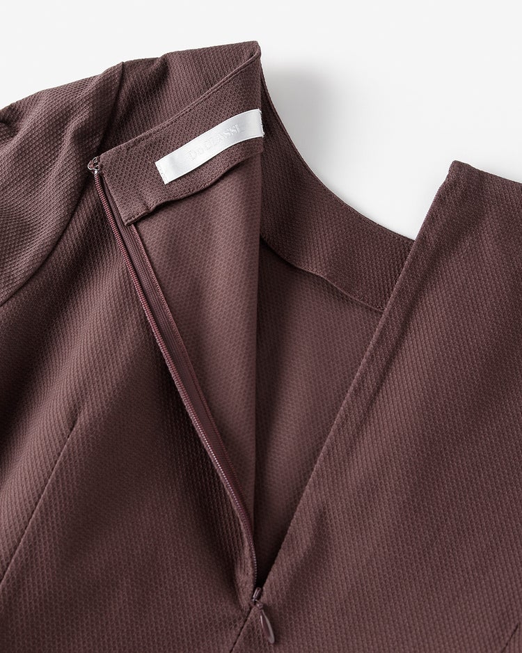 華やかな場にふさわしい、コットンピケ素材のフレアワンピース。ウエストにギャザーを寄せた女性らしいふんわりとしたシルエットで、共布のベルトを合わせるとより可愛らしさが引き立ちます。表面に凹凸のあるピケ素材はしっかりハリがあるため、どこから見ても美しいフレアシルエットをキープ。体型も響きにくく、着るだけで女性らしいスタイルに仕上がります。