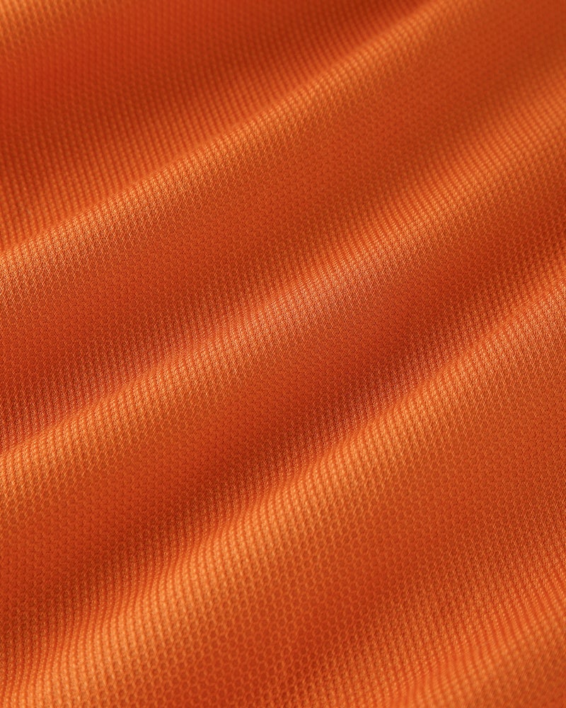 ハリ感のあるコットンピケ素材美しいシルエットを保つハリ、肌に張り付かない凹凸感、さらにポリウレタンを混紡した適度なストレッチ性が魅力の生地。