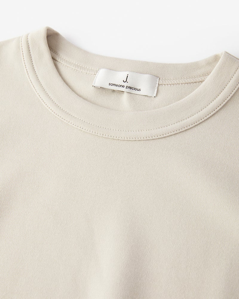 ヨレずにいつも綺麗な表情にデザインはもちろんですが、大人の肌に映える素材感も大切に。ピュアコットンをスムース編みにして伸縮性と適度なハリを両立。やや中厚な生地感は、ボディの肉感も拾わずすっきりした着こなしを叶えてくれます。
