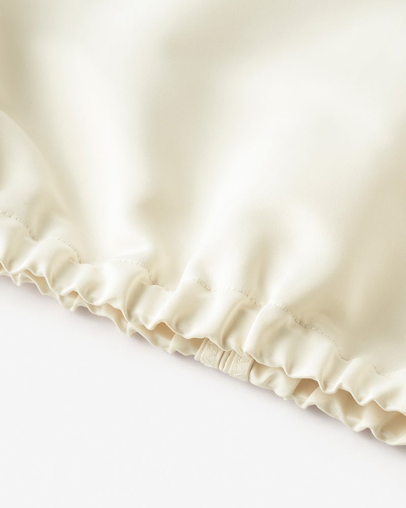 幻想的な光を解き放つ重ね着でも1枚でも一年を通して活躍するブラウスだからこそこだわったのは、国産の最高級サテン生地。ギラギラしすぎない品のいい艶めきが大人の肌を一段と綺麗に魅せてくれます。ヨコ糸に特殊加工でウール風のふくらみとハリ、弾力性を表現した糸を用いているから、着るだけで形が決まり、時間が経っても着崩れることがありません。