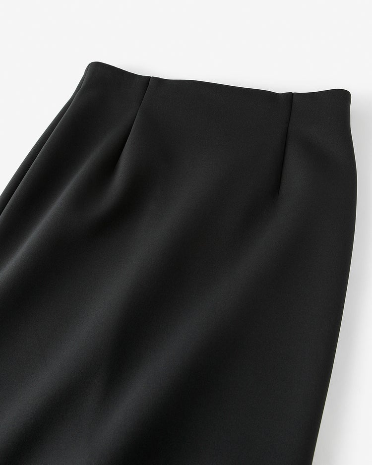 裾プリーツのペチコートを覗かせて遊び心を膝が隠れるエレガントな長さのシンプルなストレートスカート。付属のペチコートは裾をスリット入りのプリーツ生地で切り替えたデザイン。ペチコートと一緒にはいて遊び心のあるシルエットを楽しんだり、スカートだけはいてシンプルなシルエットにも。ペチコートは他のスカートにもご使用いただけるデザインになっています。