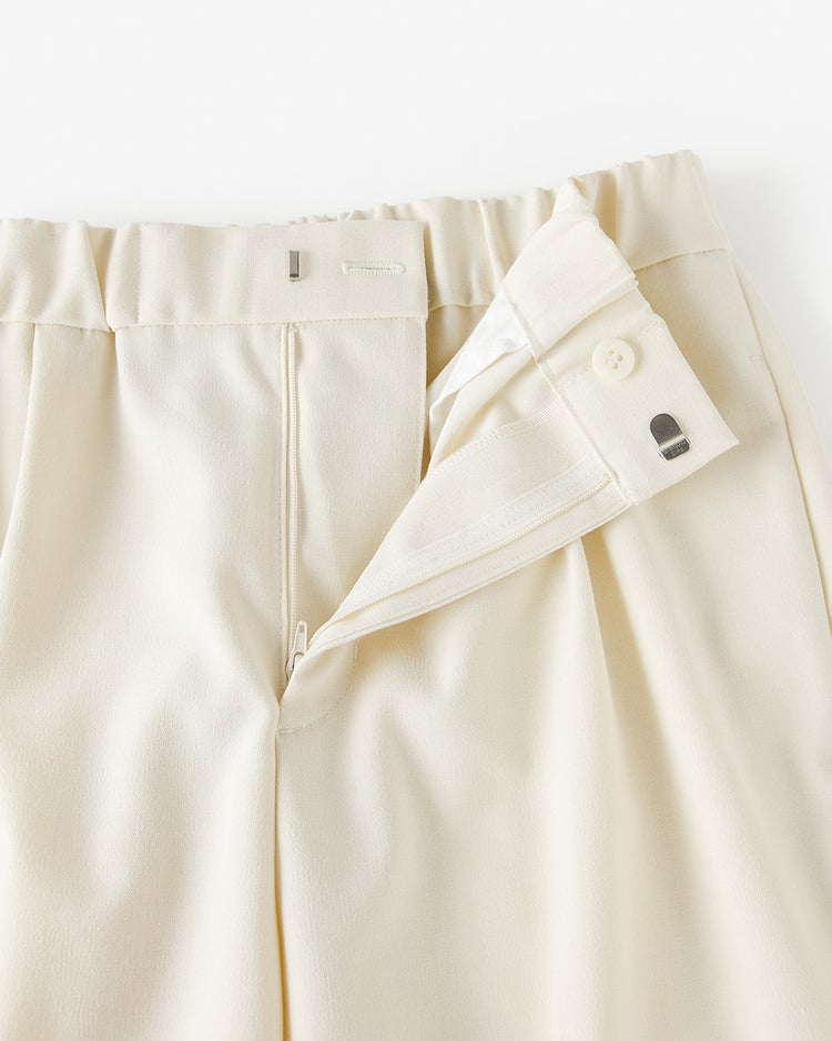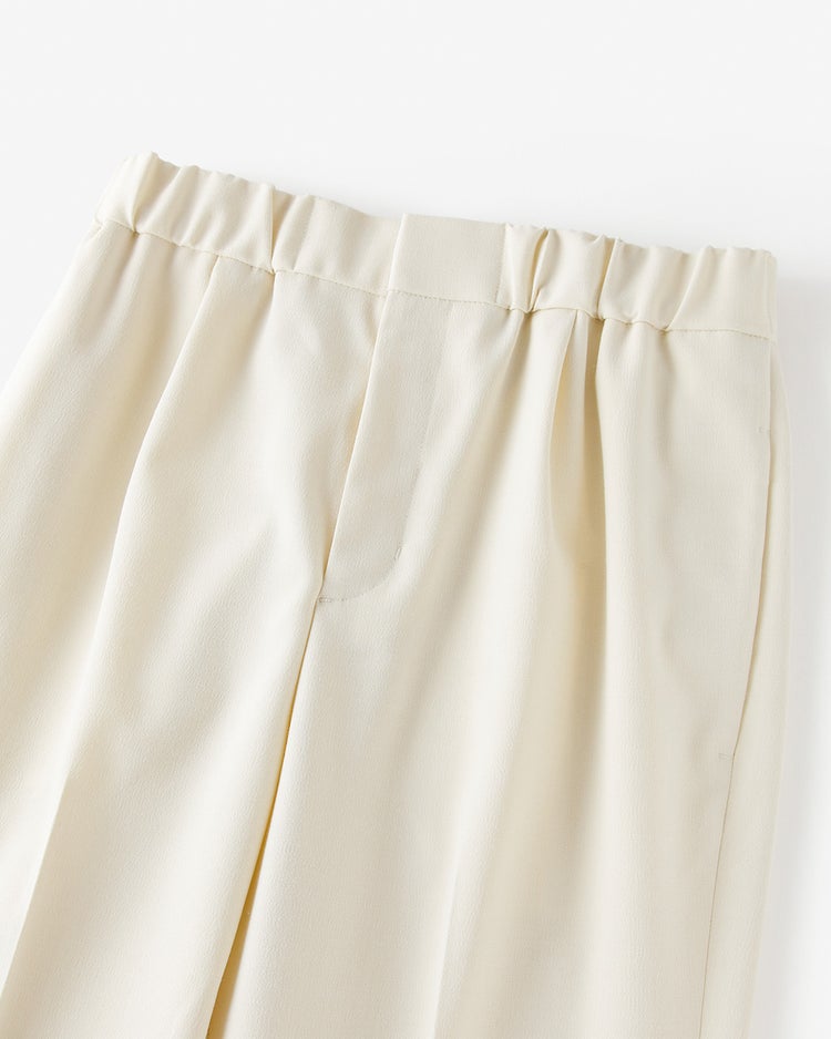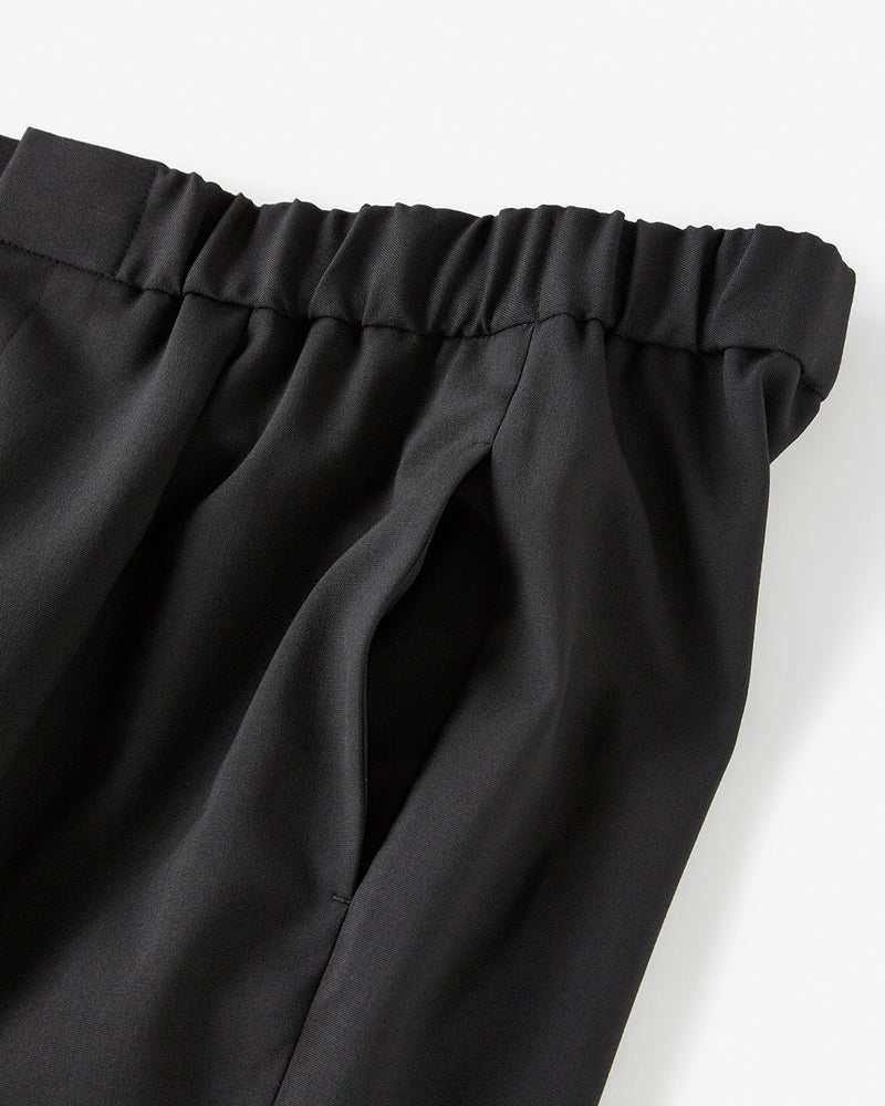 秋冬の進化点は「快適さ」にも。すらりとした見た目ながらぐるりと内蔵ゴムを仕込むことによって、驚くほど楽なはき心地に。ウエストゴムとは言っても無駄なゆるみはカットしているので、ルックスは本格パンツさながら。美しさも心地よさも、大人の理想を叶えました。