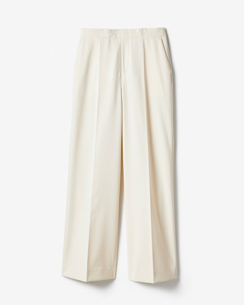 腰まわりから膝まではフィット、裾にかけて少しだけ筒幅を出した美脚ストレートパンツ。センタープレス入りできりっと着こなせます。