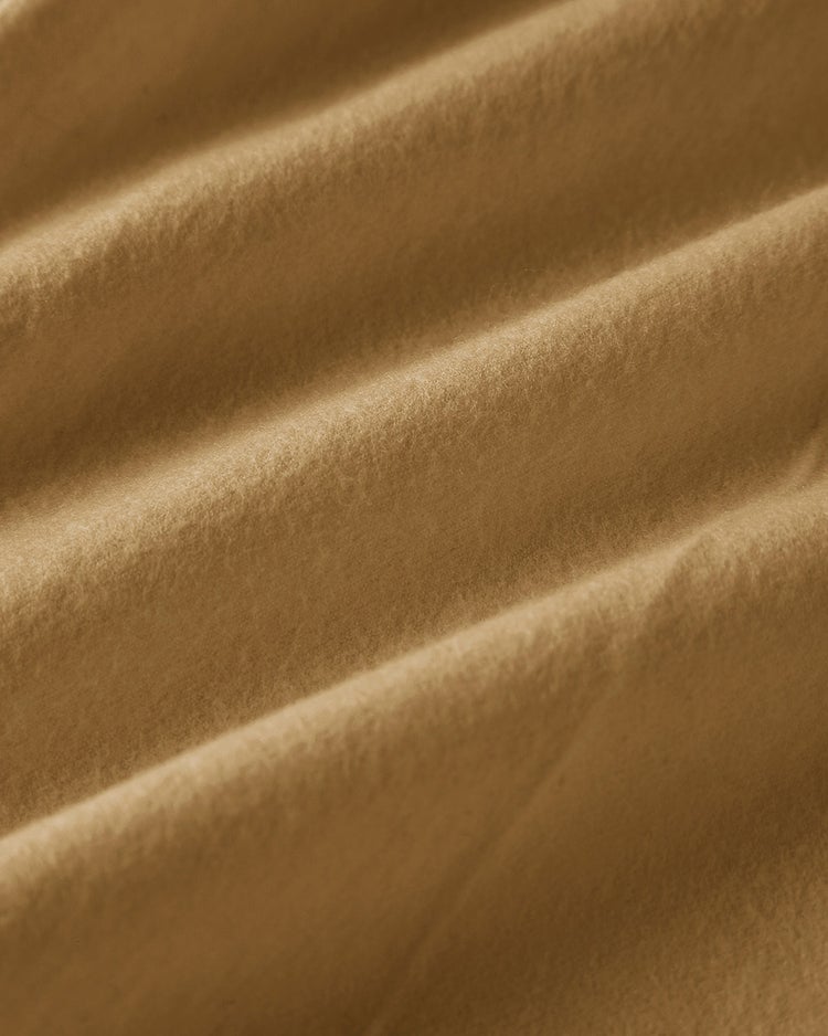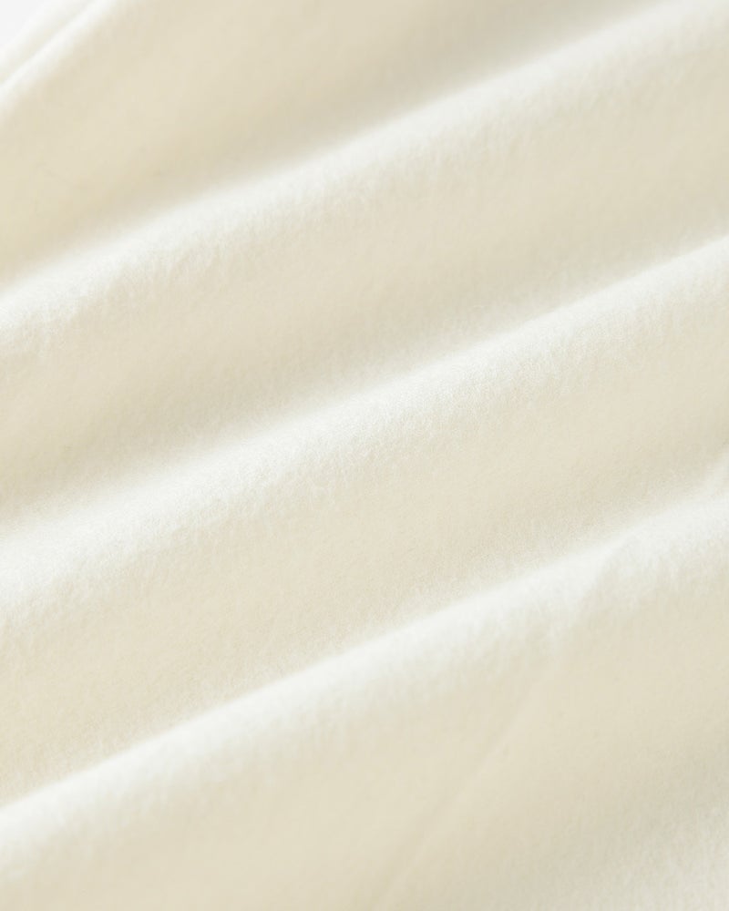 細番手のウール糸を密に織り上げ、縮絨加工でハリを出した尾州産のウールサキソニー素材。ハリととろみを両立したバランスの良い素材。