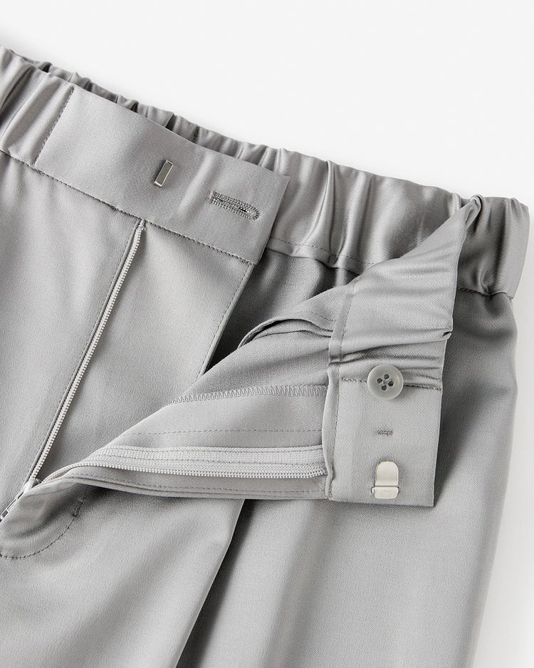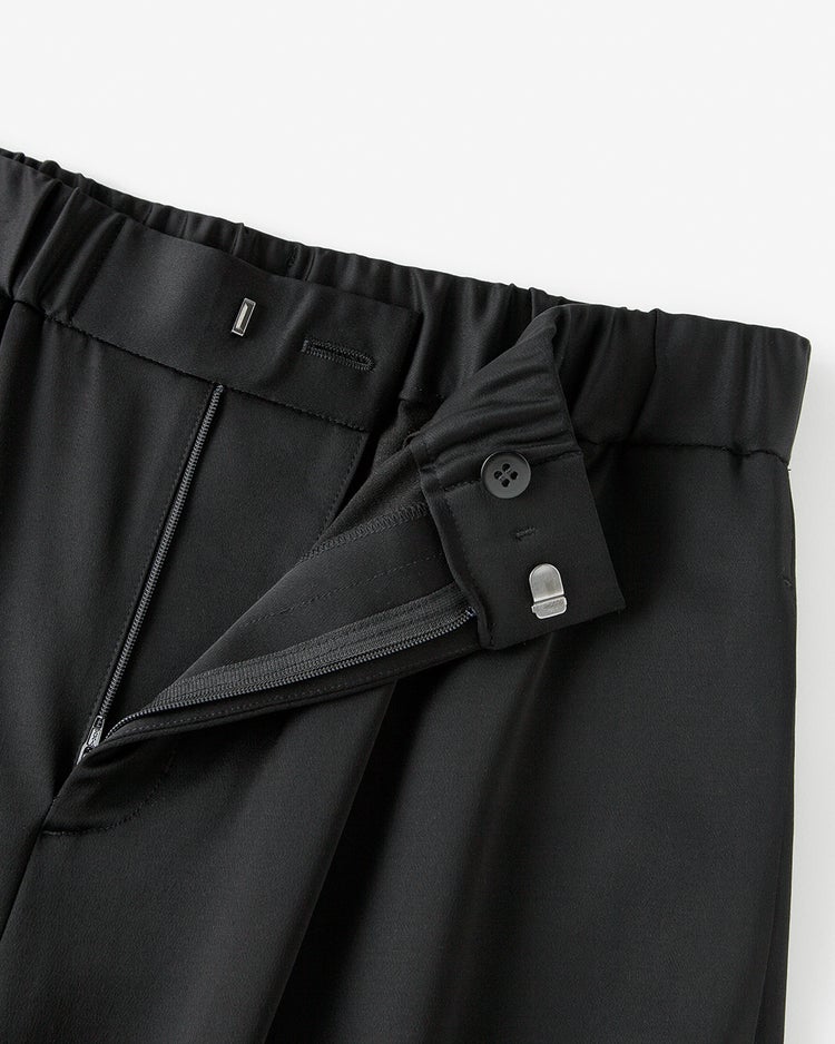 〈Point〉一見美しい本格仕立てのワイドパンツに見えますが、実はウエスト内側にはゴムを内蔵。見た目に響くことなく、驚くほど快適なはき心地を備えた大人に相応しいストレートワイドパンツです。