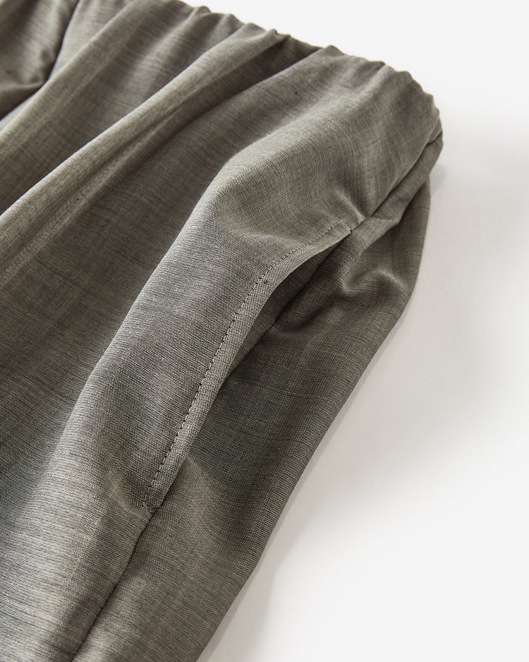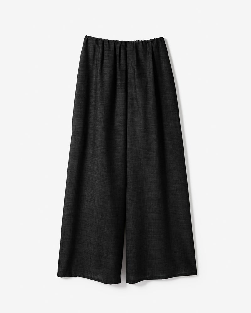 極細番手のヴァージンウールを先染めし、絶妙なシアーグレーに仕上げた贅沢なワイドパンツ。ほのかに透ける美しい質感が、春夏の大人カジュアルをクラスアップしてくれます。ウエストはタック入りのゴム仕立て、たっぷりしたシルエットながら繊細な透け感で軽やかに着こなせます。