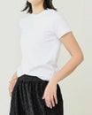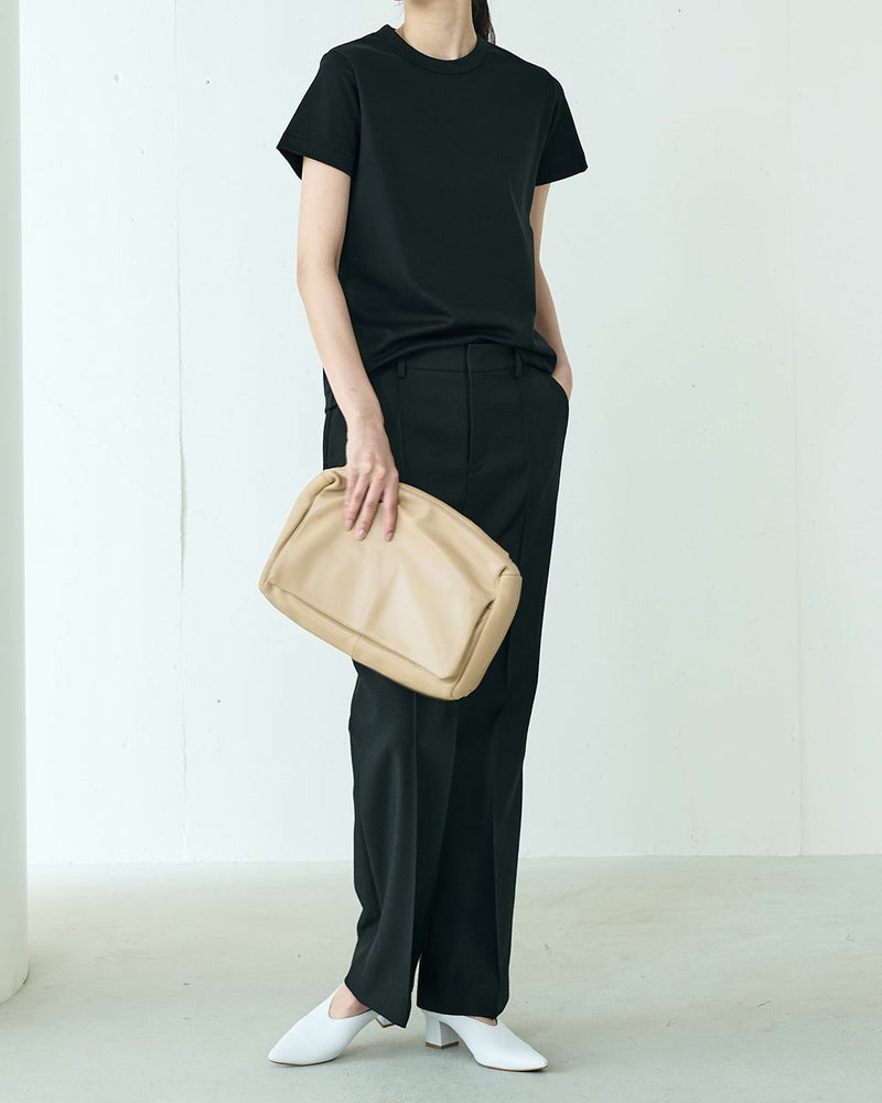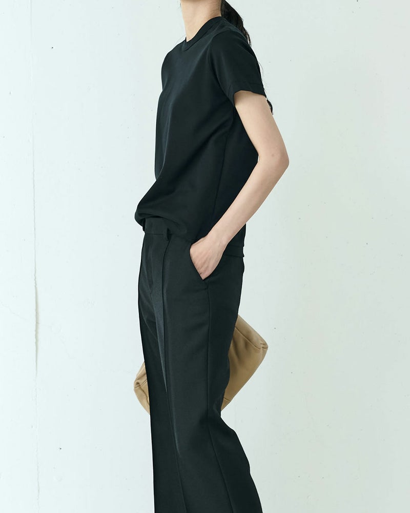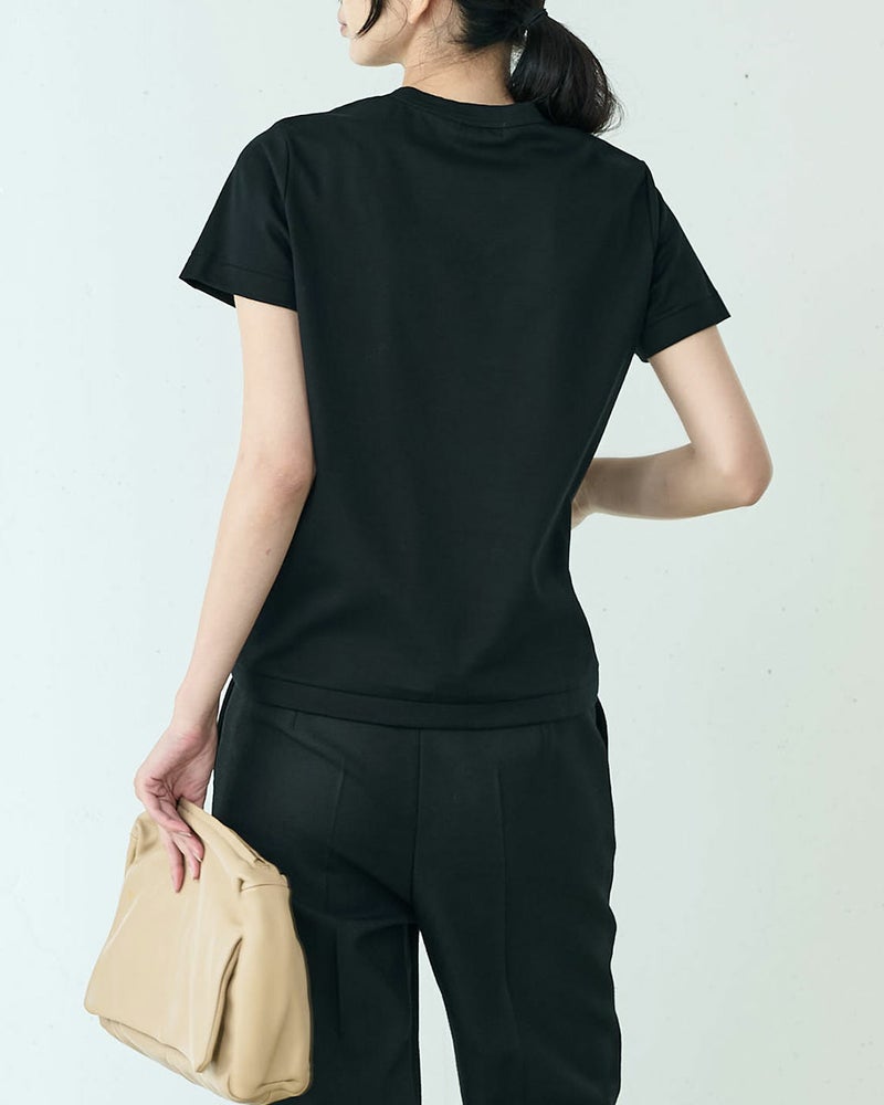 大人のボディラインをすっきり補正してくれる、コンパクトフォルムのベーシックT。身体の線を拾わない適度な厚みを持つポンチ生地にシルバイオ加工をほどこし、美しい光沢を叶えた上質素材。きっちり詰まったクルーネックや二の腕をほっそり魅せる袖デザインできれいめに着こなせるアイテムです。