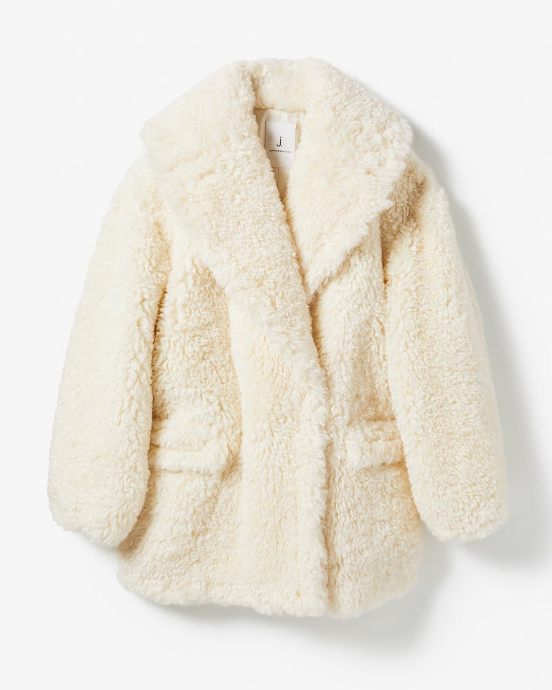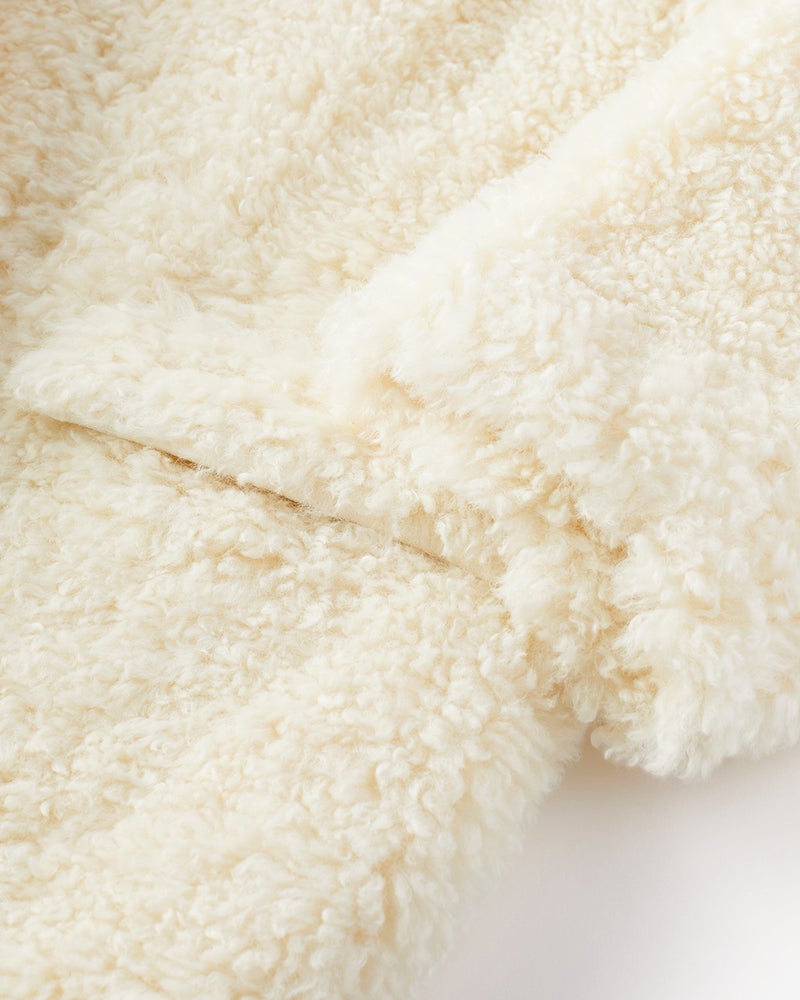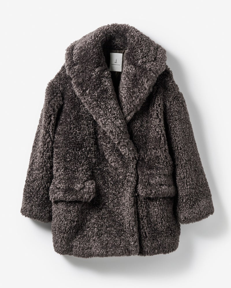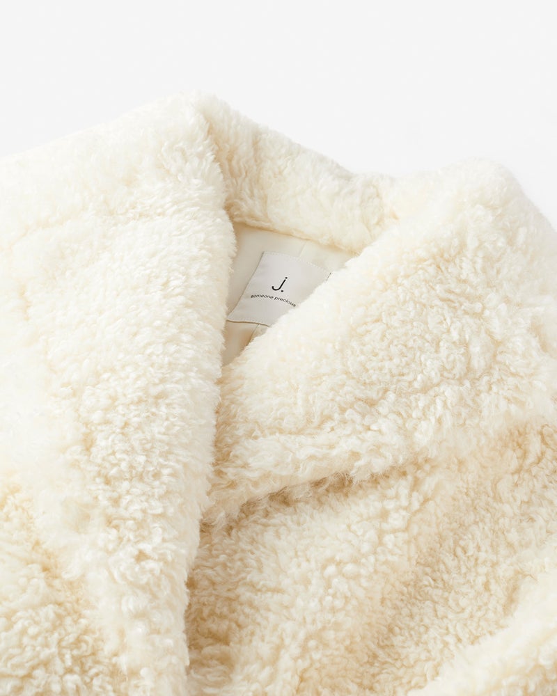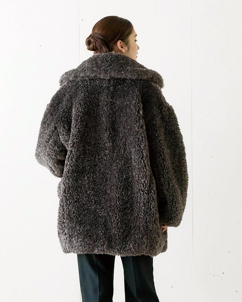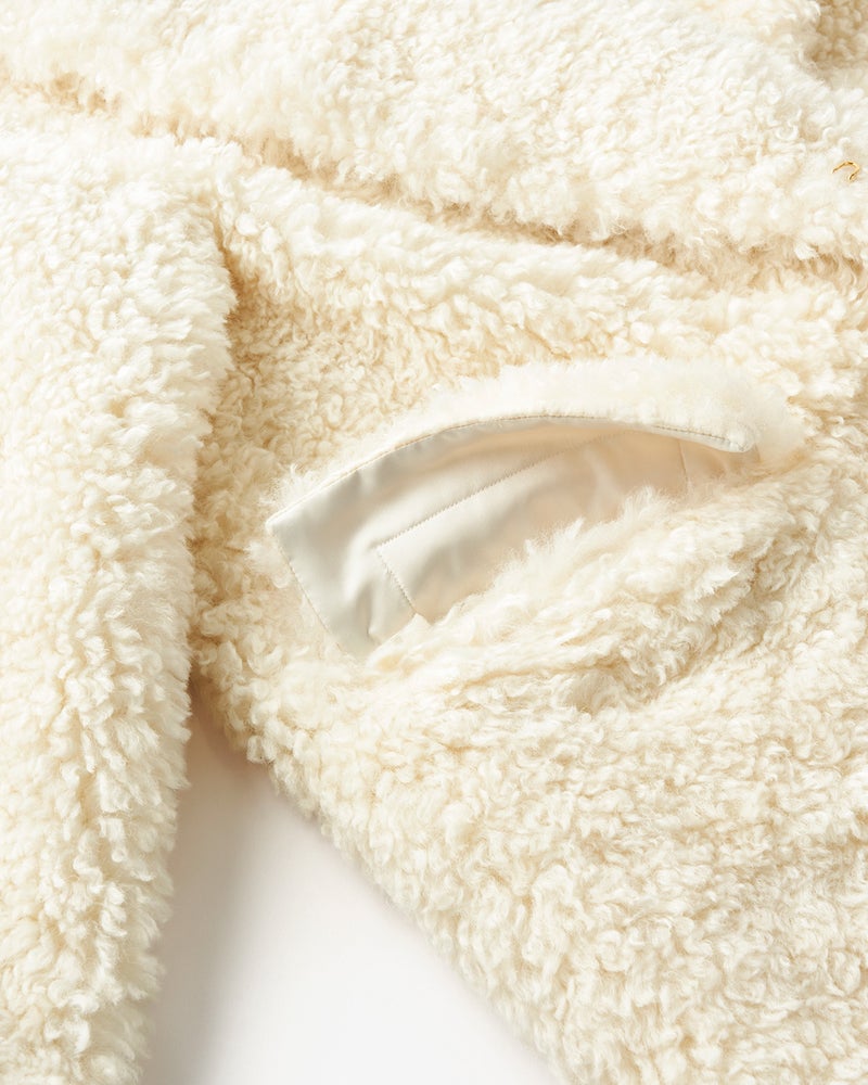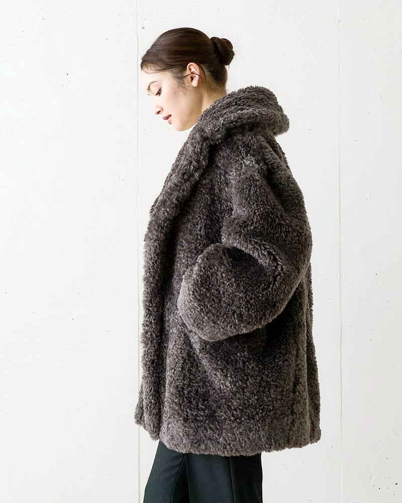 カジュアルだけどエレガント、サスティナブルなのにラグジュアリー。軽い着心地やイージーケアも嬉しいエコファーのアイテムは、今や大人の冬の定番。テディベアのようなモコモコのキュートな素材だからこそ、あえてデザインは身体を包み込むようなダブルブレストのシックなデザインで大人の好バランスに。