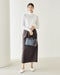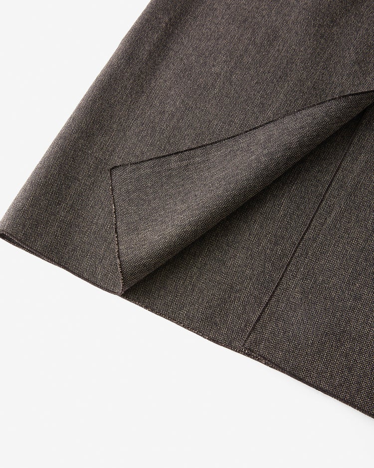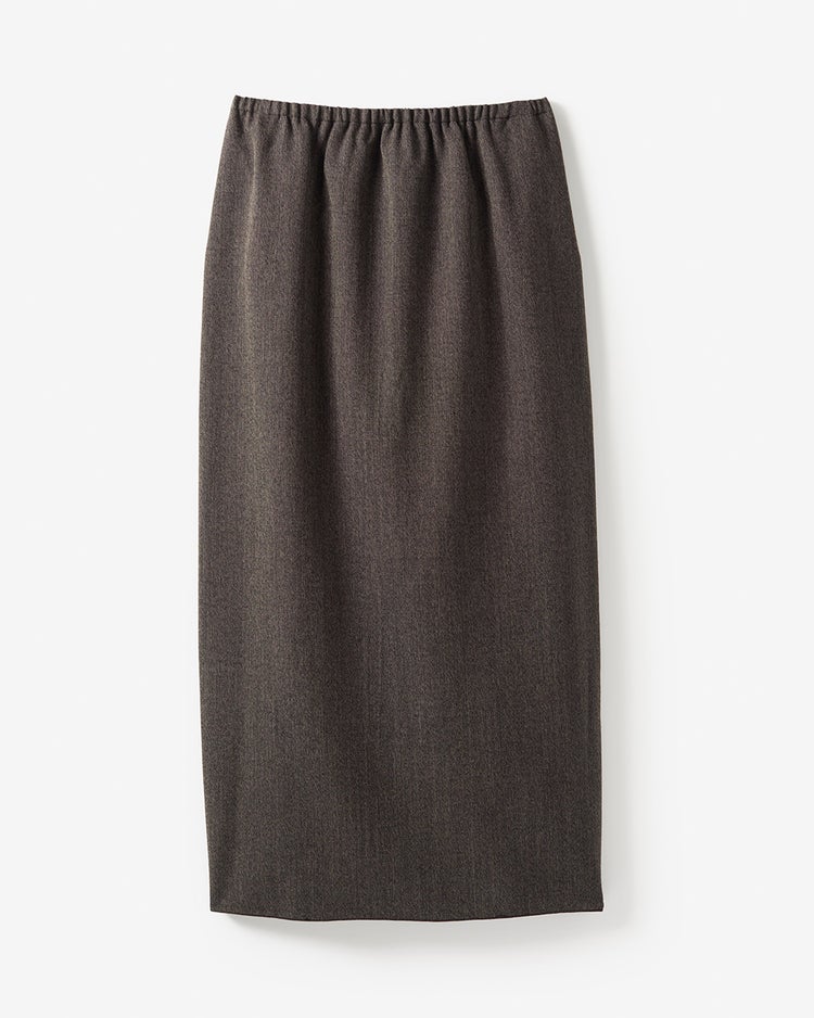 秋冬のワードローブに欠かせないウール素材のロングスカートは、ゆるっとボクシーなシルエットを選んでこなれた着こなしに。ベーシックなアイテムだからこそこだわったのは極上の素材感。南米パタゴニア地方で織り上げられた極上ヴァージンウールは、シンプルなデザインだからこそ素材感が際立つ。同素材のジャケット(品番:14432 ヴァージンウール・ボクシージャケット)とセットアップで着こなすのもおすすめ。