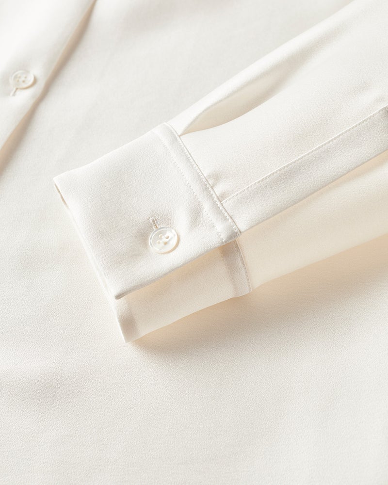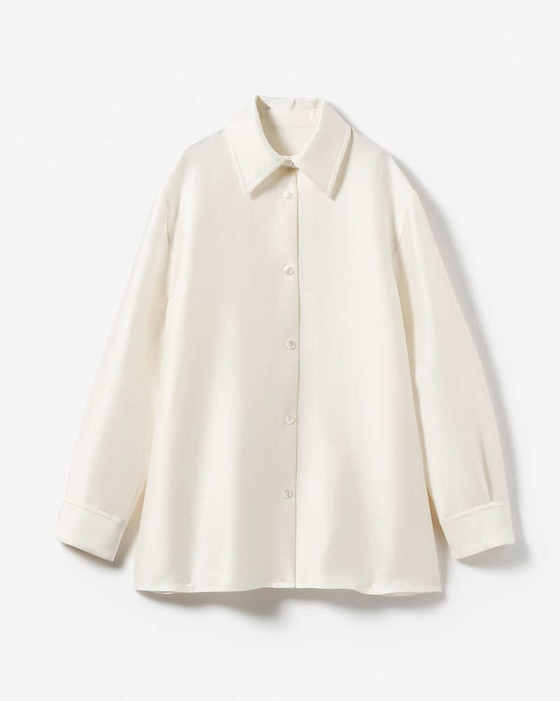 羽のような軽さと絹の艶、そして立体感を保つオクタダブルならではの構築性を活かしたオーバーサイズシャツ。身体の線を拾わないゆったりした立体フォルムは、シャツとしてはもちろん抜け感のある羽織りアイテムとしても活躍。