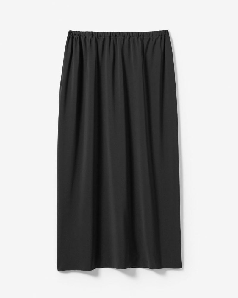 どんなトップスに合わせても間違いなくシックにまとまる、ストレートラインのスカート。バックスリット入りだから、動きやすさと女性らしさも両立。ウエストはゴム仕様で、ノーストレスなはき心地。素材にはイタリア・EURO JERSEY社の定番トリコットを採用。夏時間をコンフォートに包み込む、なめらかで柔らかい肌ざわり。