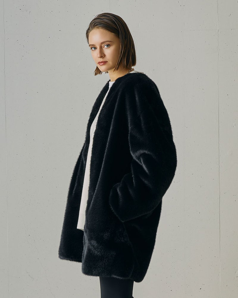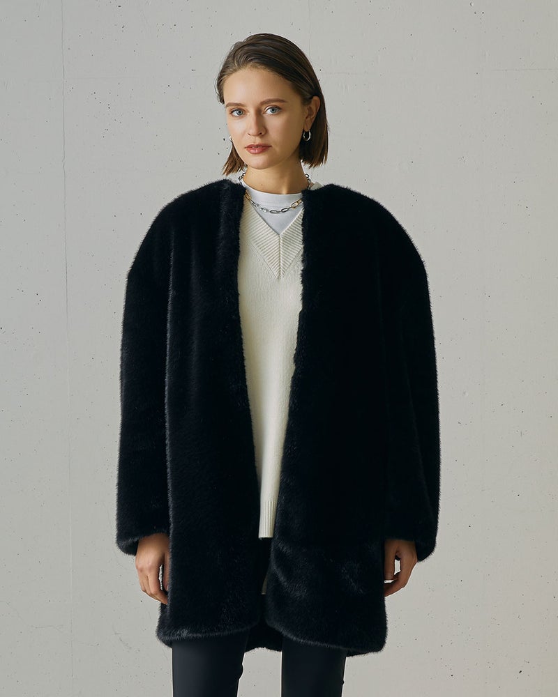贅沢ミンクタッチファーの洗練ノーカラーコート