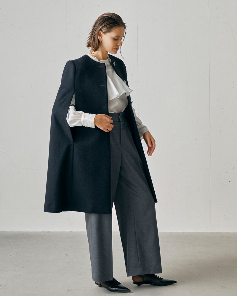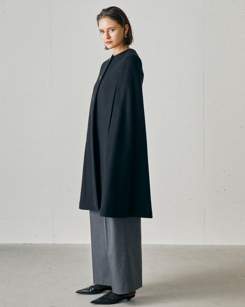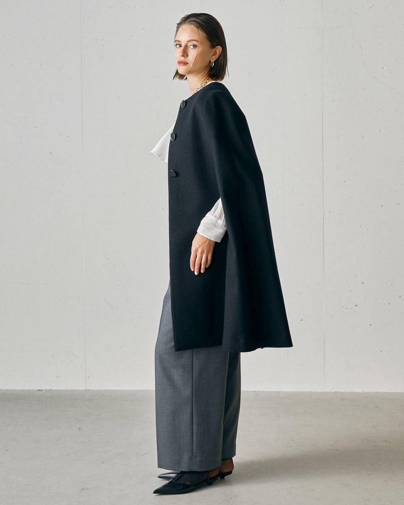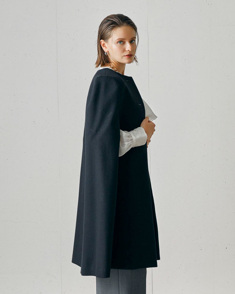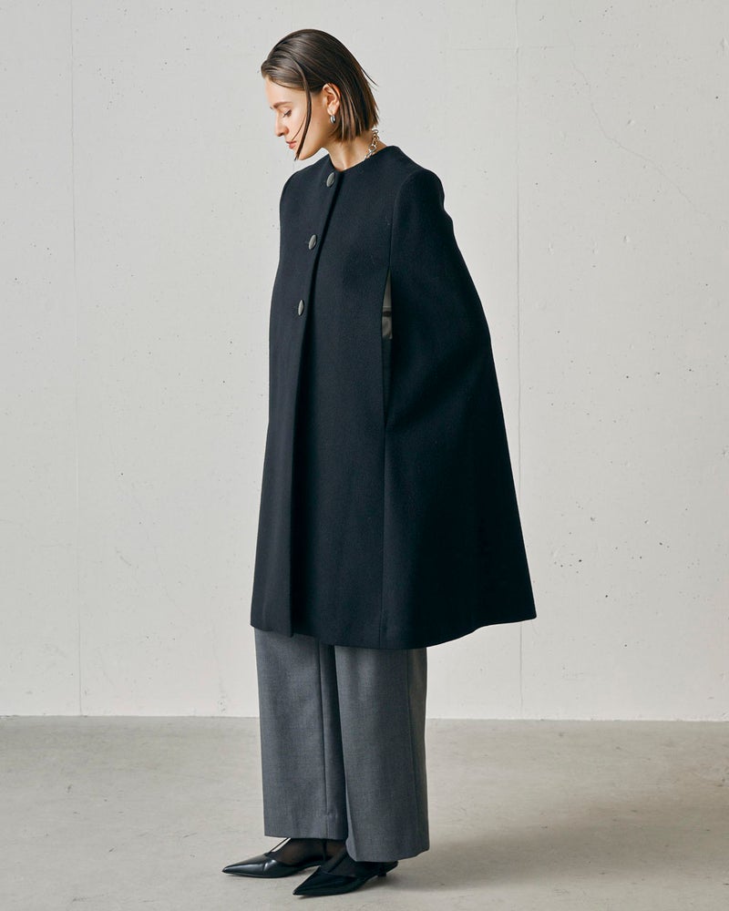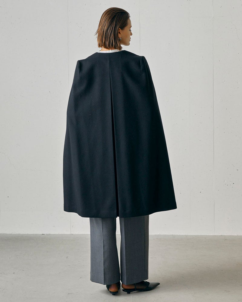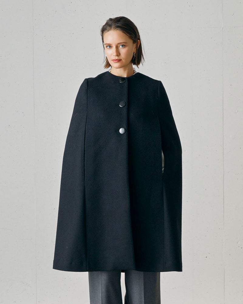 70年代風の品格あるクラシックデザインを再現した、すらりとスマートなケープコート。J.ならではの立体裁断を活かした流れるようなAラインのシルエットが美しい佇まいを実現。スリットから腕を出すデザインは、インナーで遊んだり、ロンググローブでエレガントに装ったりとお洒落の楽しさを堪能させてくれる。素材はなめらかな表面感が美しいSuper140'sウール。わずかに合繊を織り交ぜることで、ほのかな光沢感も叶えました。