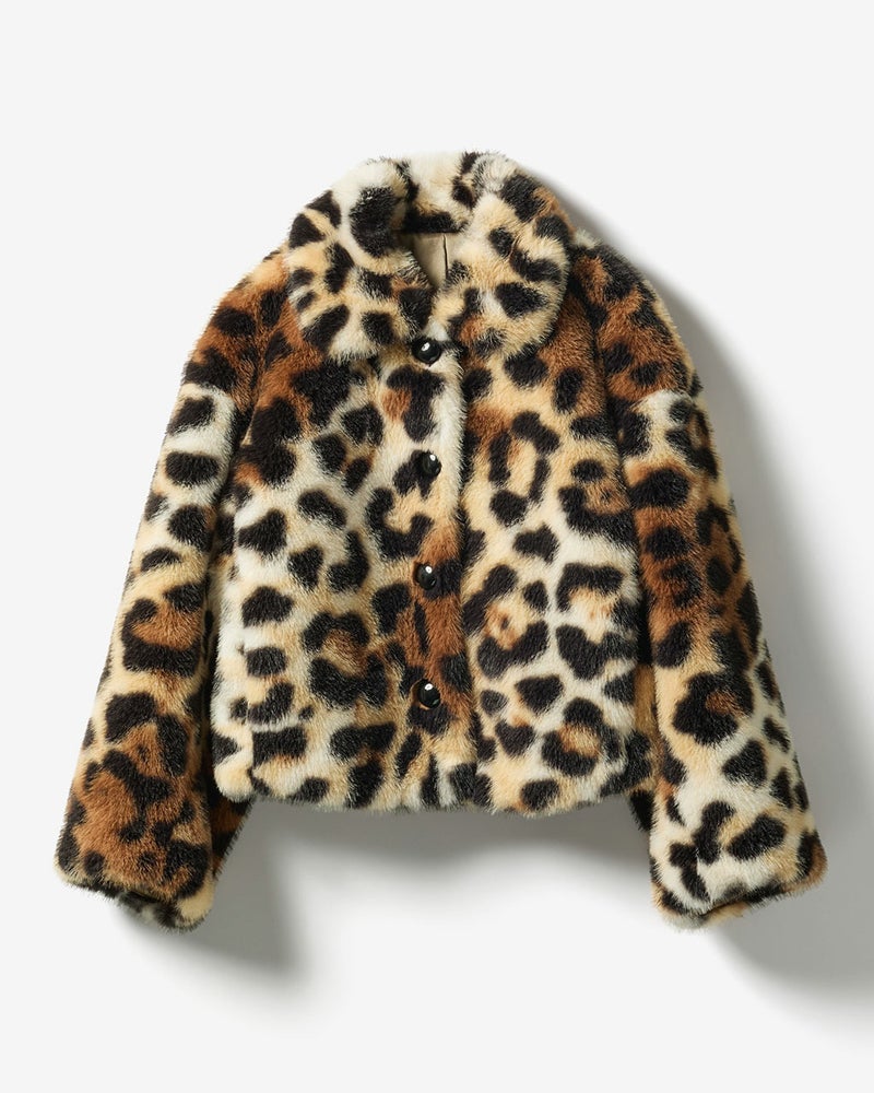 大人が着てこそ品格が漂う、レオパードエコファーのショートコート。毛足の短いなめらかなエコファー素材は、ボリュームがあるにも関わらずふんわり軽い着心地。コンパクトな丈感とラウンドカラー(衿)でカジュアルにも着こなせるデザインは、デニムにもワンピースにもどんなコーデもお洒落の存在感を際立たせてくれる。