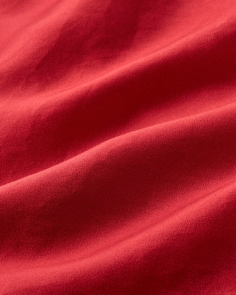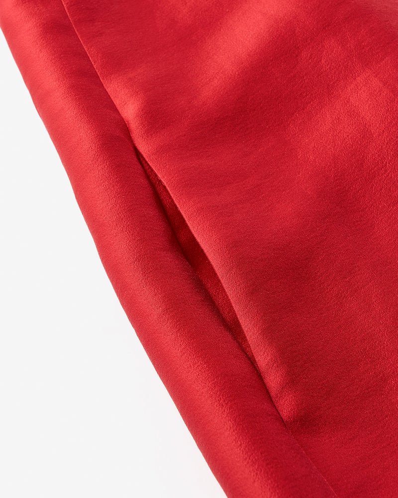 ブランドのシグネチャー素材、オクタダブルクロスの魅力を最大限にひき出すワンピース。絹を思わせる光沢とハリがあり、しかも羽根のように軽い着心地。シンプルかつ構築的なコクーンシルエット、デコルテをきれいに見せるラウンドネックは、あらたまった場でも映えるモードな印象。はっとするような発色の美しさも、オクタダブルクロスならでは。