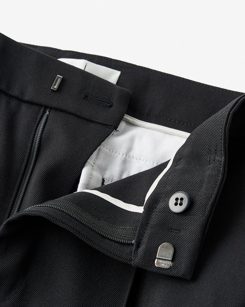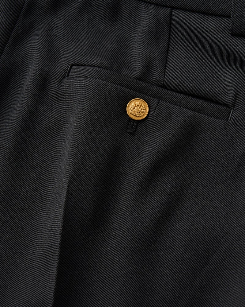 ストレートでありながら、ほんの少し裾にかけてフレアになった絶妙なシルエット。はくだけで、下半身の気になる凹凸やゆがみをまっすぐに整える効果は、j.(ジェイドット)が誇る立体裁断によるもの。センターにピンタックを入れ、縦のラインが強調されることで、よりスマートに。ヴァージンウールとヴィスコースをミックスし、三子撚糸と呼ばれる3本の糸を撚り上げる技法で、艶とハリのある素材感に。バックポケットのゴールドボタンがはなやいだアクセント。