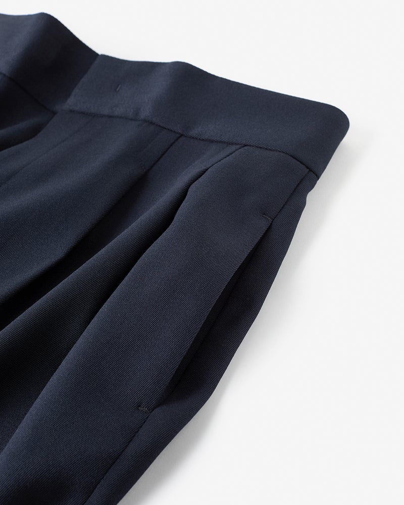 大人女性をスマートに見せつつ、タイトにならず楽なはき心地。しかもきりりとした品格のあるワイドパンツ。オーストラリア産のヴァージンウールSUPER100とヴィスコースをブレンドし、梳毛糸に仕立てた生地は、メンズライクでクラシカルな風合いが魅力。j.(ジェイドット)ならではの立体裁断により、ハイウエストでスタイルアップが叶うシルエット。同素材のオーバーサイズジャケット(14657)とのセットアップなら、よりモードな着こなしに。フェミニンブラウスやカジュアルなTシャツなど、幅広いコーディネートにも対応可能。