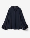 • ドレープアセテート・フリルブラウス 詳細画像 ネイビー 1