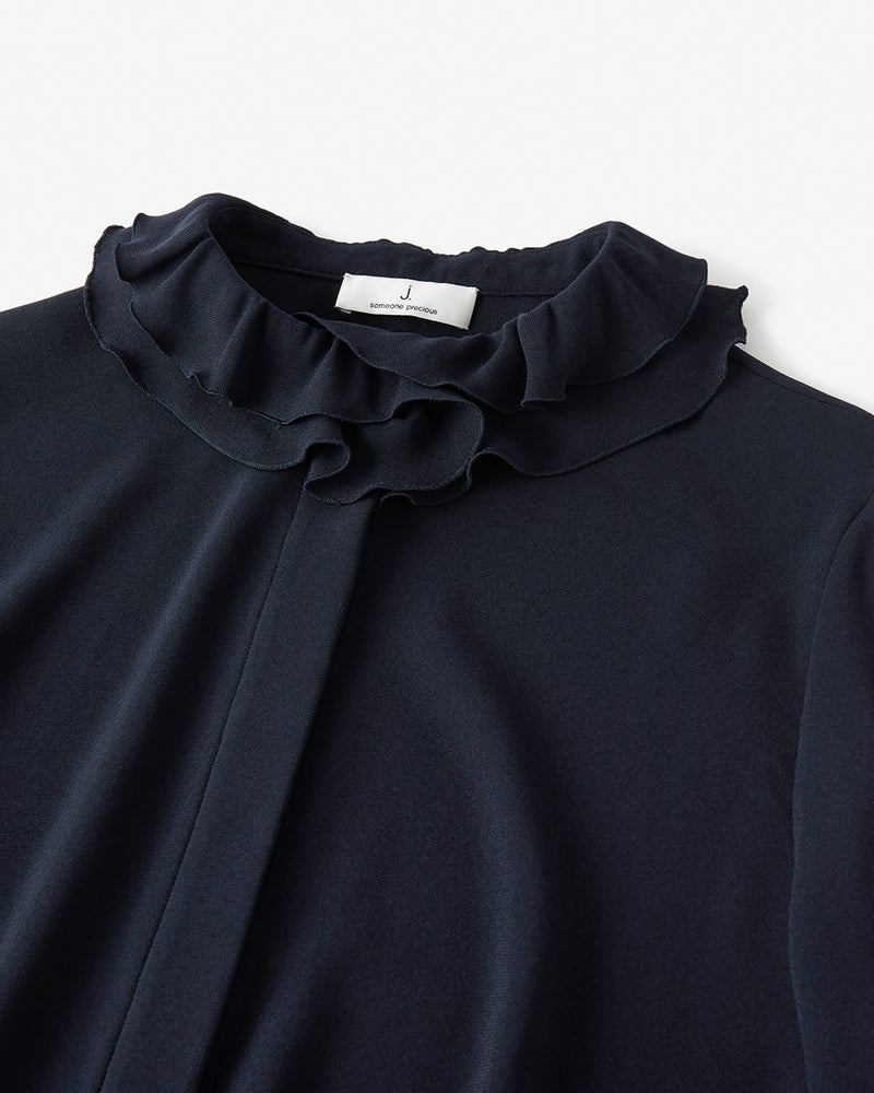 • ドレープアセテート・フリルブラウス 詳細画像 ネイビー 4