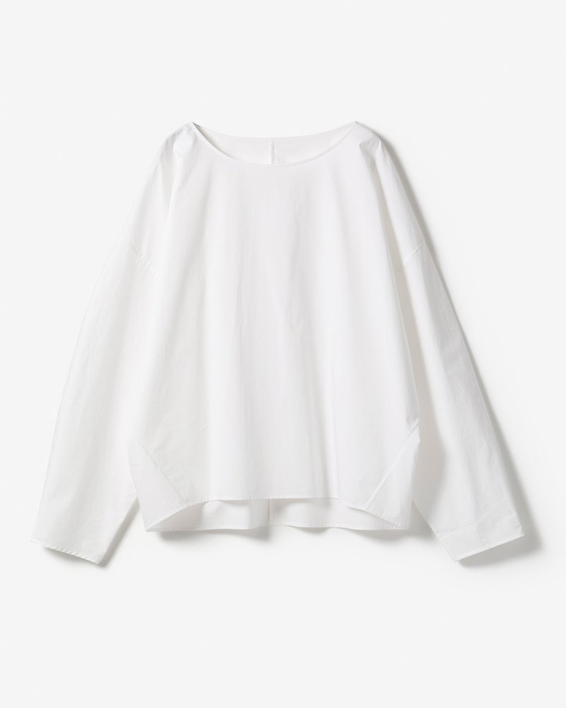 Tシャツのように毎日着たくなる、シンプルで活躍頻度の高いブラウス。極細の糸を高密度に織り上げたタイプライター生地を採用し、ハリがありながらしなやかな落ち感のある仕上げに。ゆったりと中で身体が泳ぐような、リラックスフィットの身頃。たっぷりとした袖のシルエットは、手首を華奢に見せる効果が。ジレやカーディガンを羽織れば、さらにこなれた着こなしが完成。