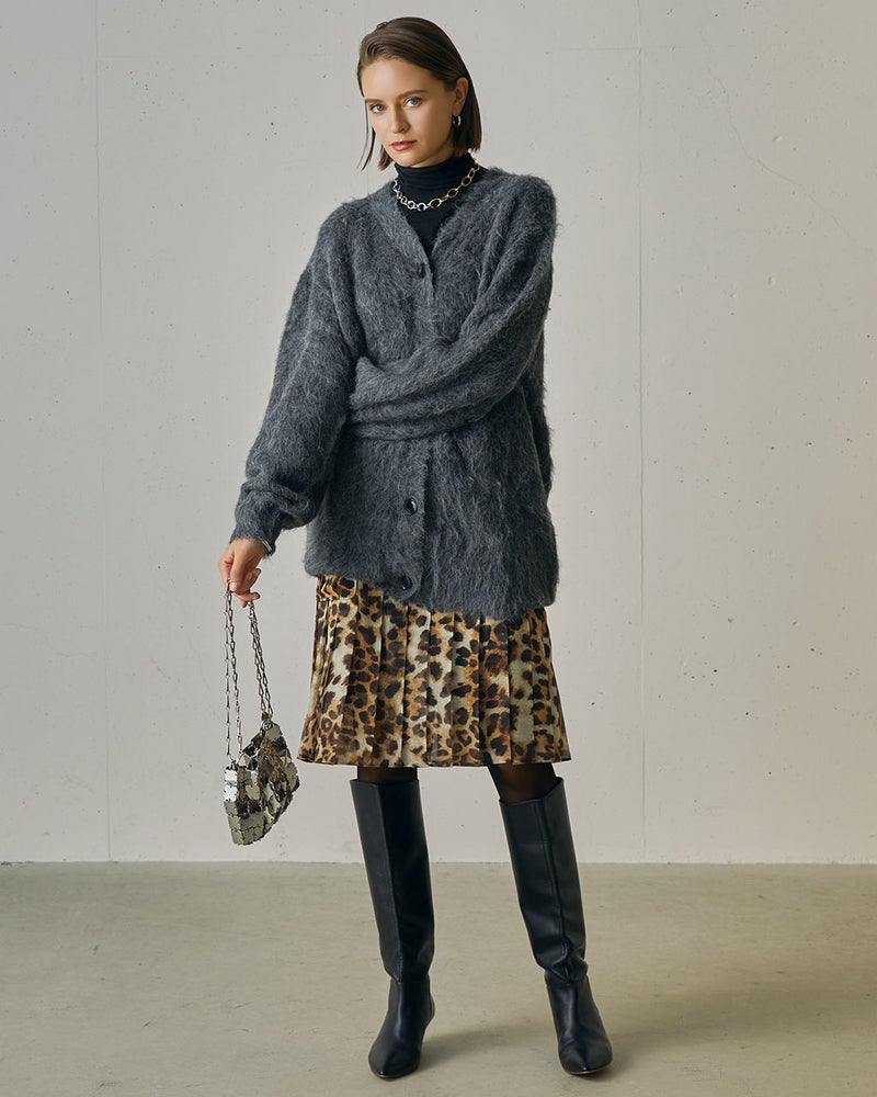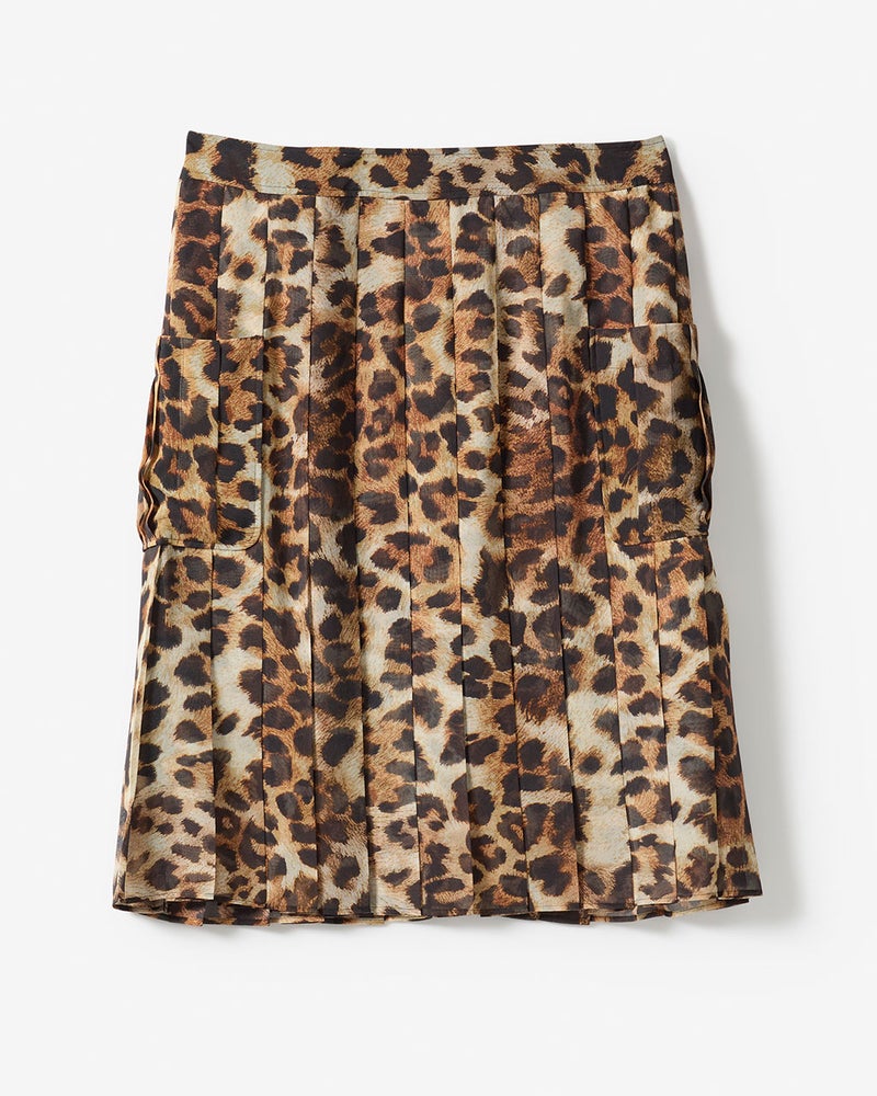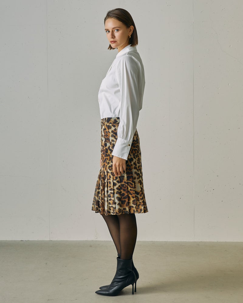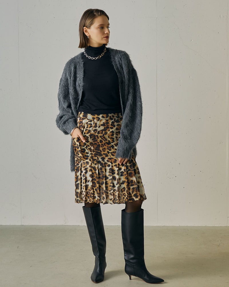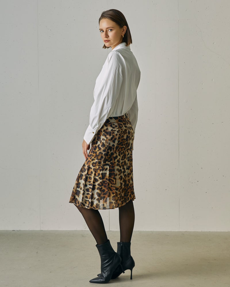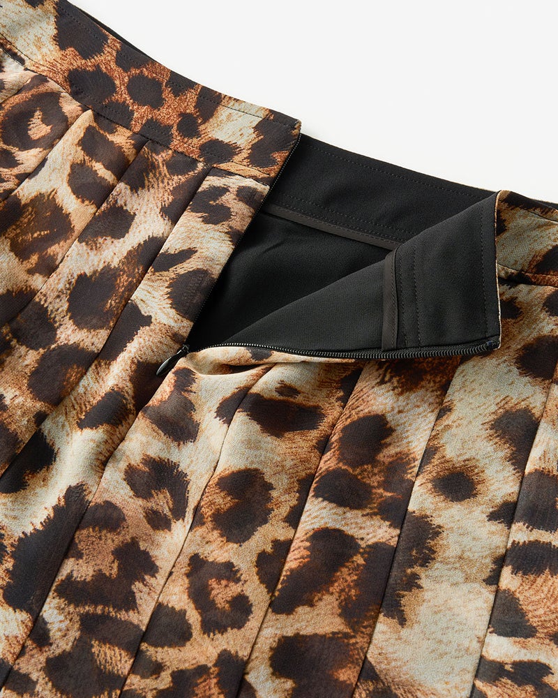 レオパードプリント・プリーツミディスカート