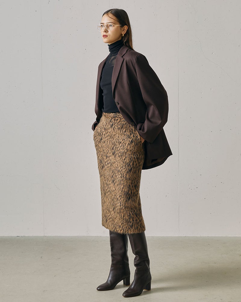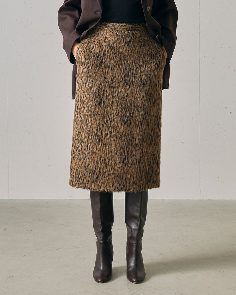 あでやかなレオパード柄をジャカード織に。さらに、ジャカードを起毛するという手の込んだ素材を使用したミディ丈スカート。柔らかくフィット感があり、伸縮性に富んだウエストバンドで快適なはき心地。シンプルなトップスと組み合わせて、柄のニュアンスを引き立たせる着こなしがおすすめ。エレガントスタイルはもちろん、カジュアルダウンも似合うオールラウンドな1着。