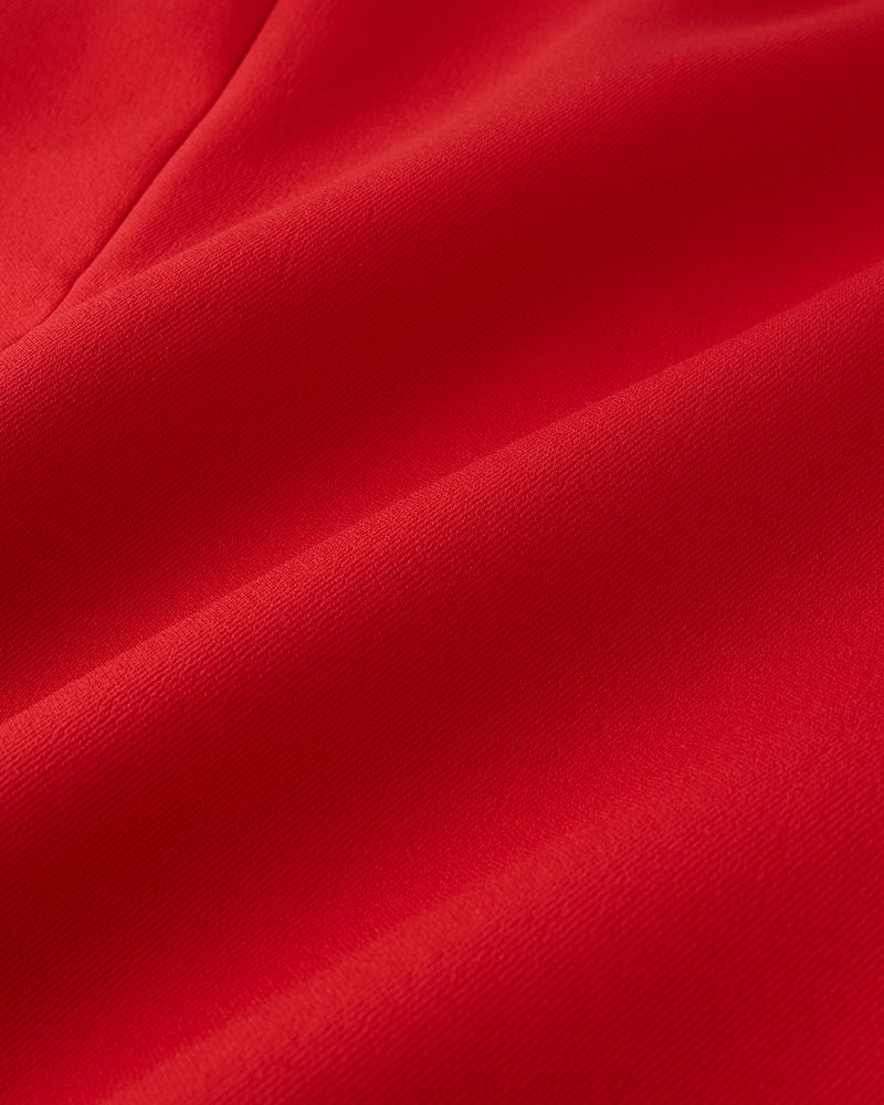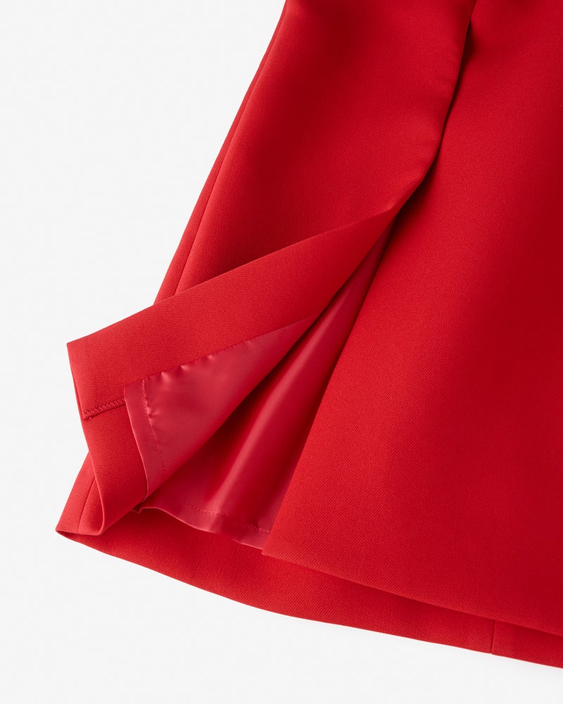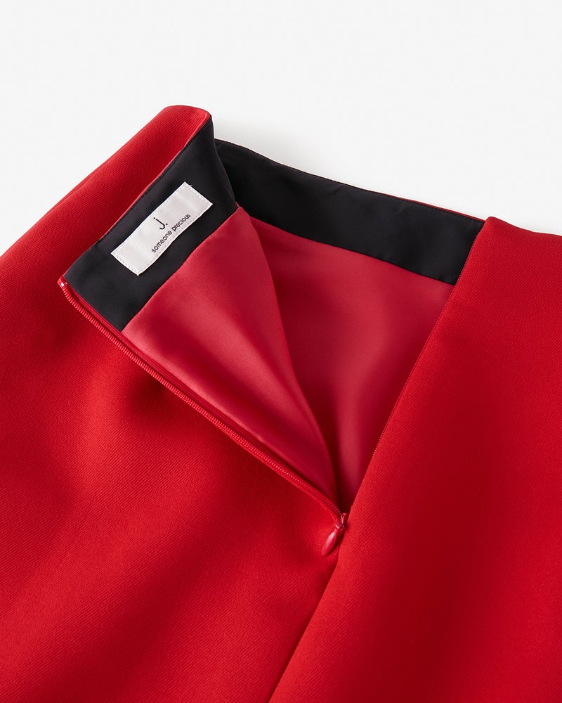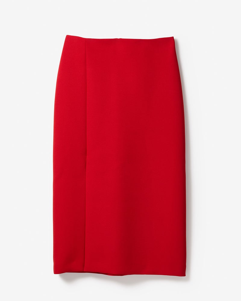 大人が動いたときのシルエットを美しく魅せるという、j.(ジェイドット)の哲学を体現する素材、マトラッセトリプルクロス。海外のハイブランドにも採用されている、三重織りの中間層を極限まで薄く仕上げた特殊加工の素材は、軽くふっくらとした生地感でほどよいストレッチ性も実現。Aラインのスカートは落ち感がきれいに出て、はき心地も快適そのもの。左フロントに入れたスリットが、スタイリッシュな表情をプラス。