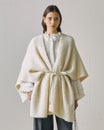たっぷりとしたボリューム感で、コーディネートの主役にもなるストールコート。肩から羽織ってアウターに、ふわっと巻き付けてストールに、ベルトでウエストマークすればジレ風にも着こなせるマルチWAYが魅力。素材は確かなぬくもりのアルパカニット。ループを作って編み立てたふわふわボリュームのある質感が冬の着こなしに存在感をプラスします。