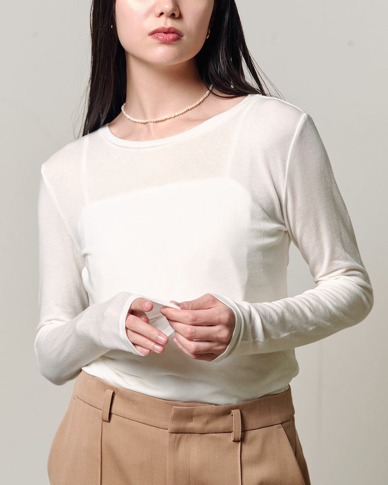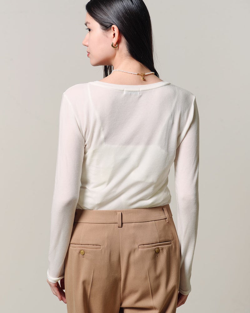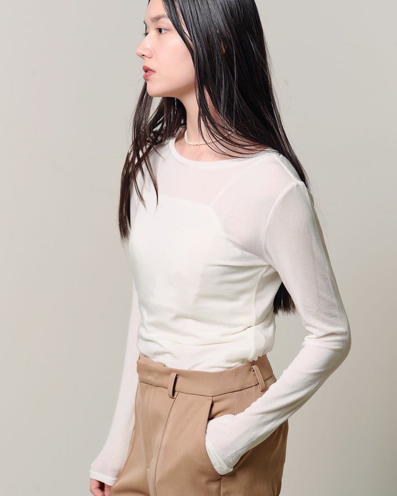 秋冬の重ね着を美しく仕上げるカシミヤシルク混・シアートップス