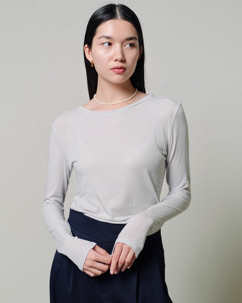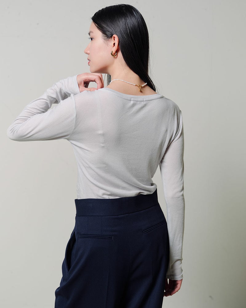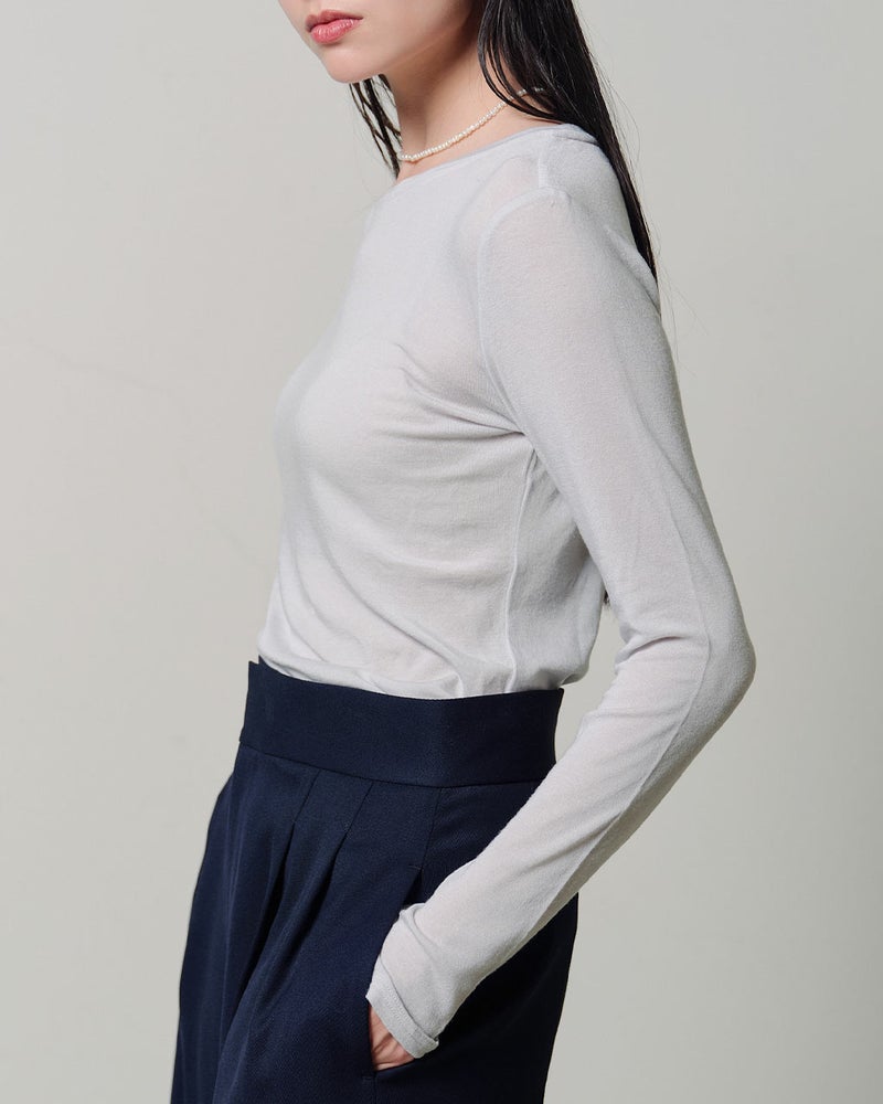 秋冬の重ね着を美しく仕上げるカシミヤシルク混・シアートップス