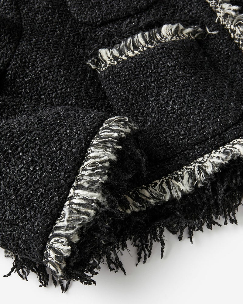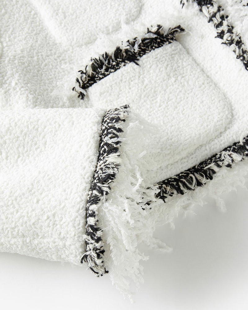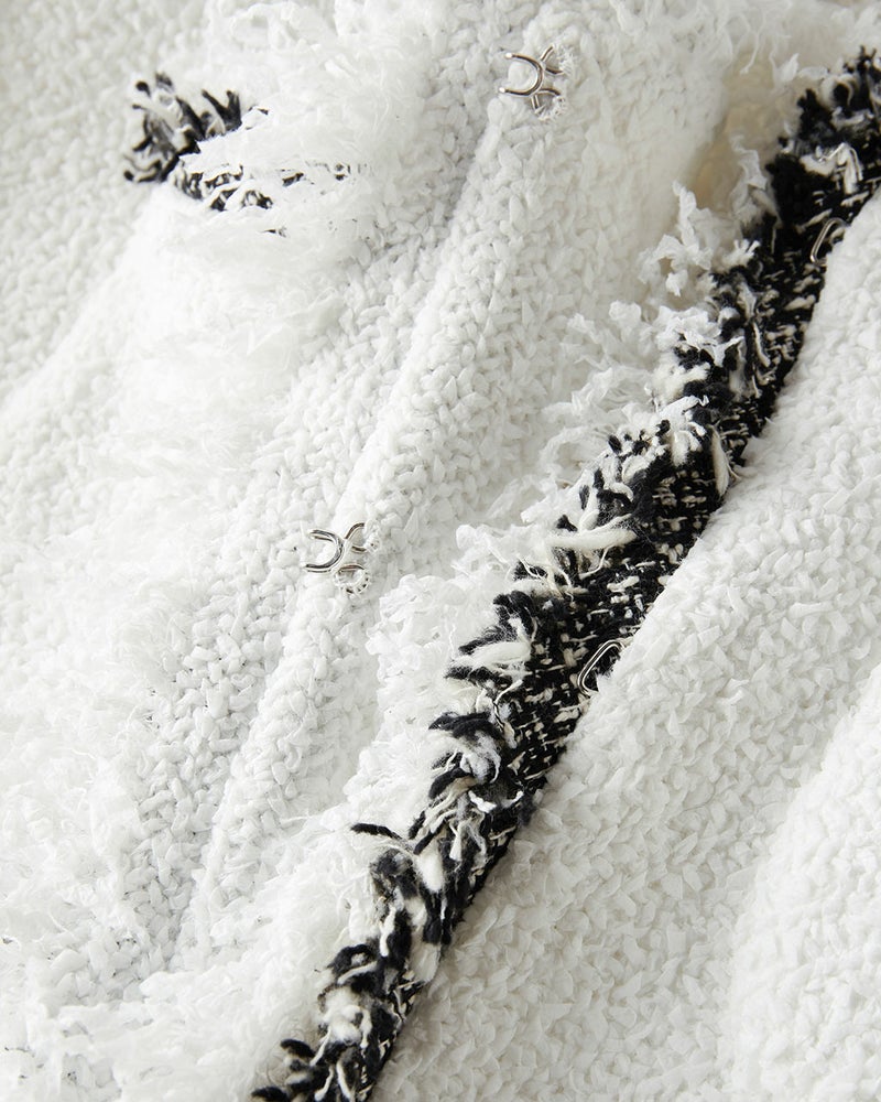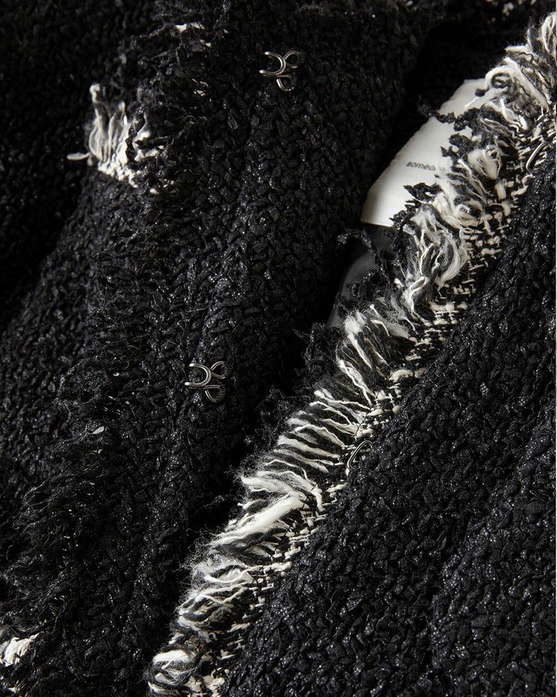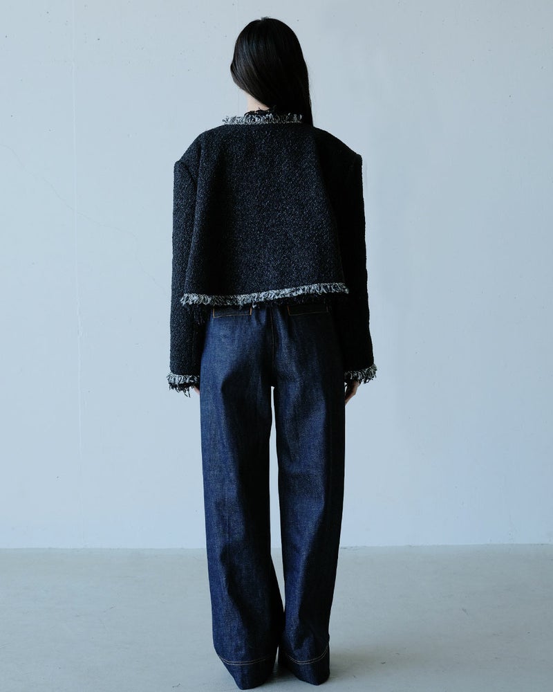 コンサバとは一線を画した、毛足の長い意匠糸が遊び心あふれるツイードジャケット。ノーカラー、トリムでノーブルな雰囲気を醸し出しつつ、背中部分にゆとりをもたせたシルエットが、エフォートレスな着心地も実現。コットンをベースにした生地にはラメ糸を織り込み、上品なきらめきにより奥行きのある風合いに。華やぎを添えたいオケージョンやパーティシーンでも映える1着。