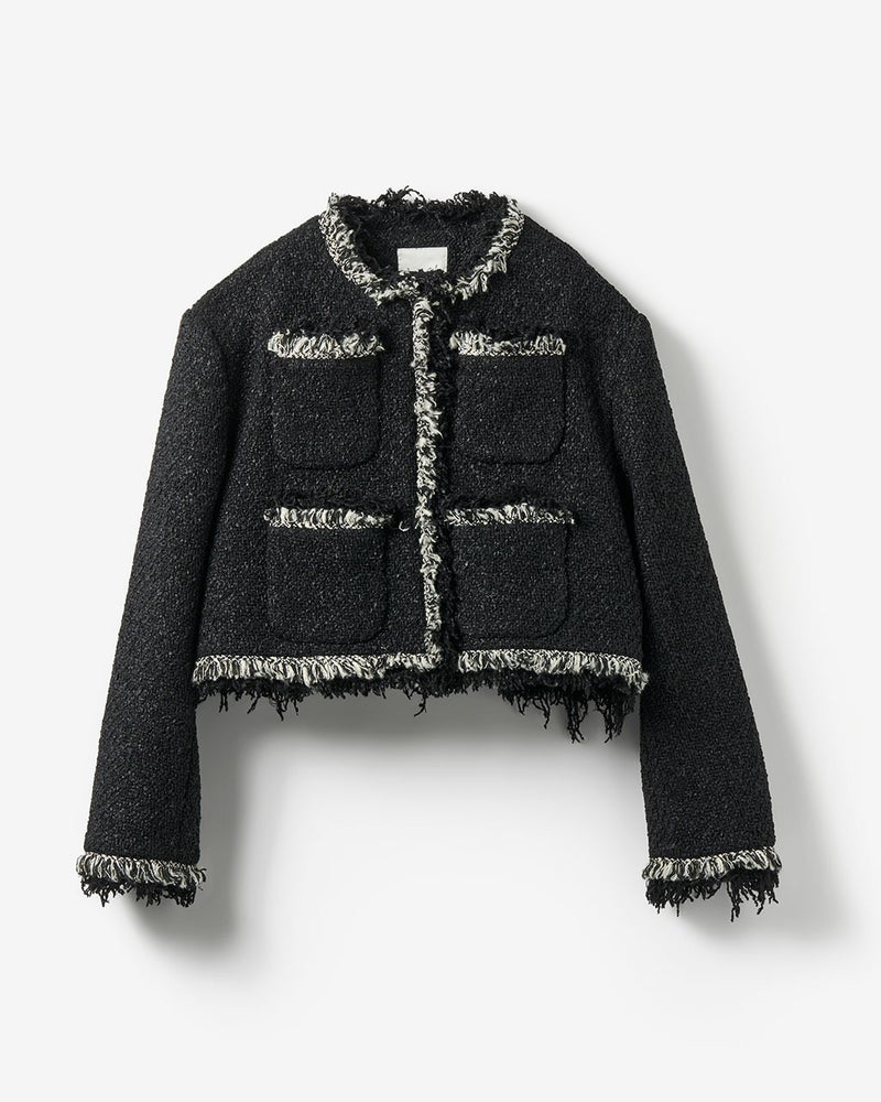 リングツイード・ノーカラートリムジャケット