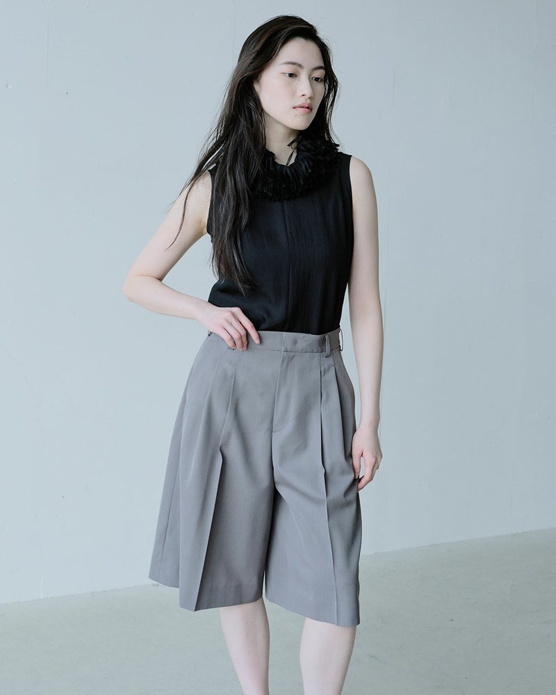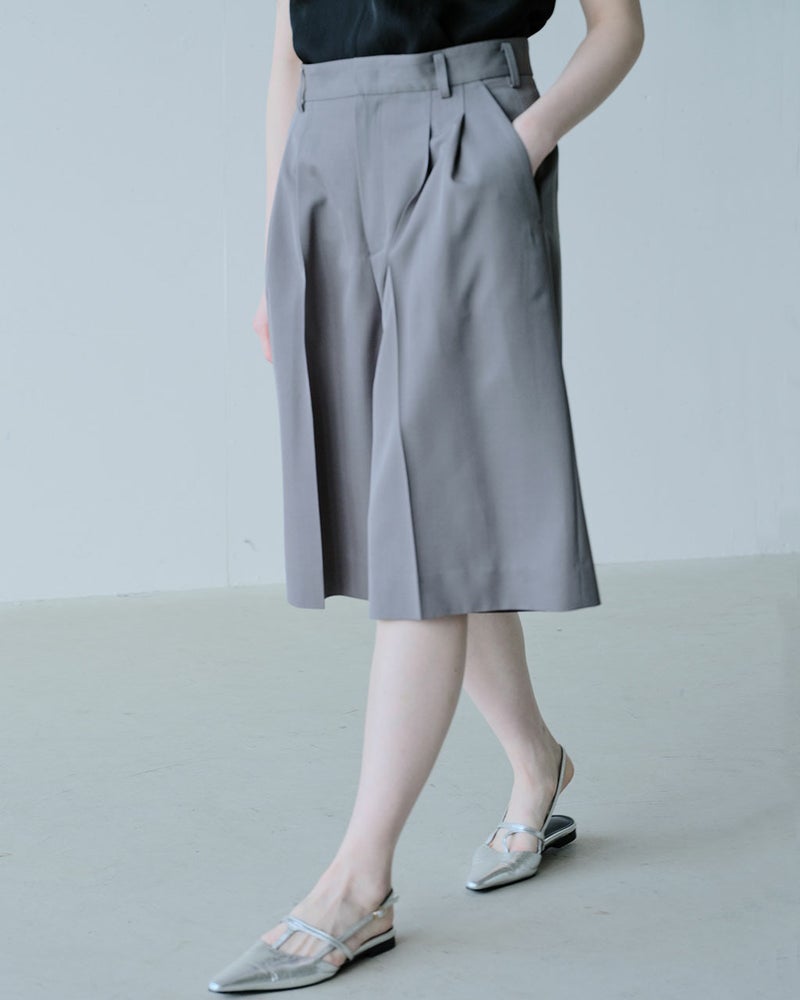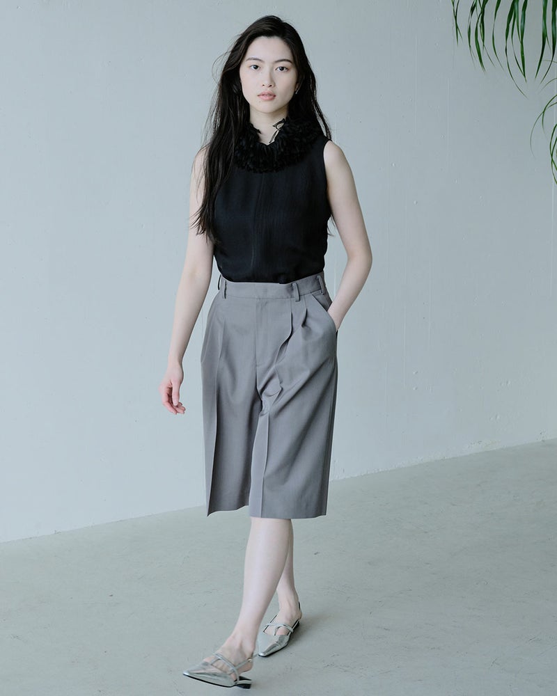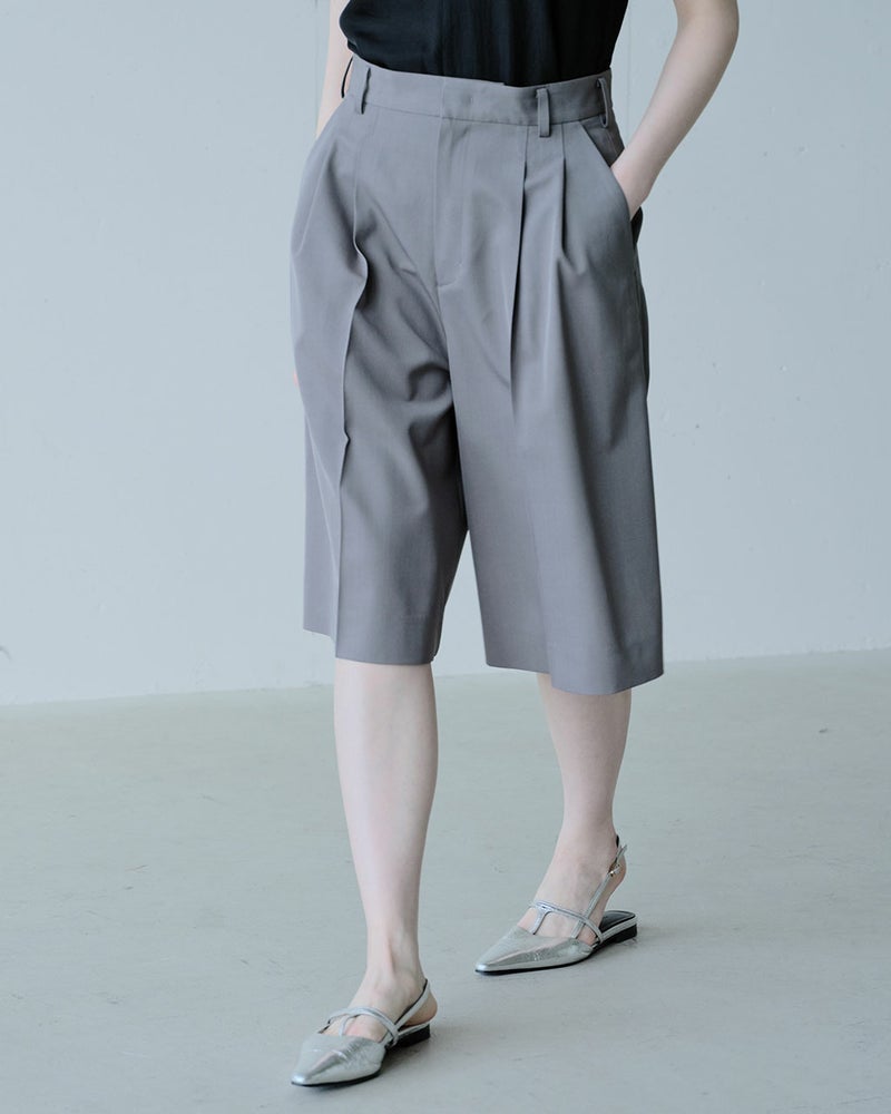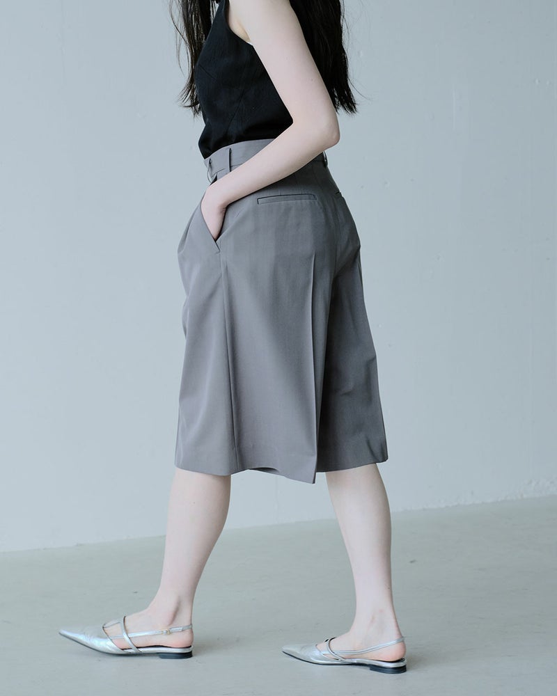 軽快で動きやすいのに、エレガントで女らしい。大人の欲しい要素をひとつに凝縮したボトムス、ハーフパンツ。j.(ジェイドット)ならではの立体裁断により、はくだけでスマートに見える設計に。適度なふくらみとしなやかな落ち感が美しいツイル生地を用い、センタープレスを入れて、きれいめコーデにも似合う上品さ。さらりとドライな肌ざわりだから、ウールミックスでも爽やかな着心地。同素材のジャケット(品番:14774 ドライタッチツイル・オーバーサイズジャケット)とセットアップでの着用もおすすめ。