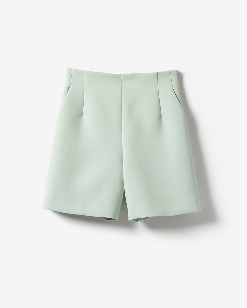 脚をきれいに長く見せる、絶妙なカッティング。動くほどにボディの美しさが際立つ、立体裁断のショートパンツ。しなやかな三重織りのマトラッセトリプルクロスは、ふっくらとした中厚の質感や上品な光沢がエレガント。それでいて適度なストレッチ性と軽さがあり、ノーストレスなはき心地。
